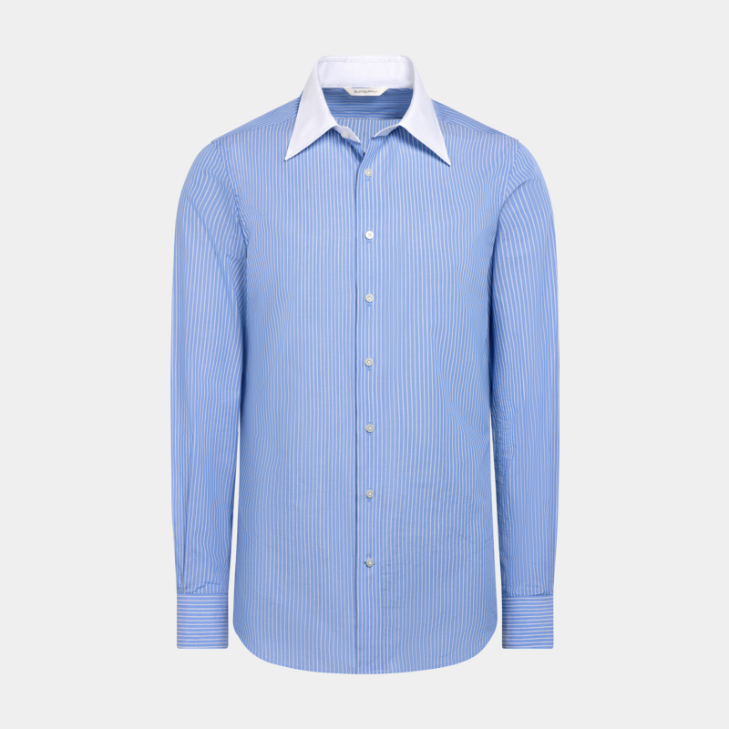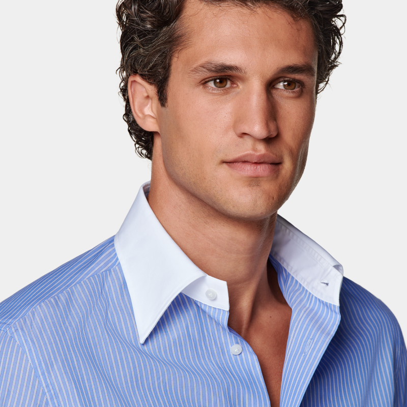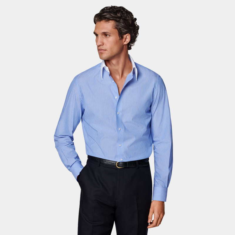 SUITSUPPLY秋季浅蓝色埃及棉合体条纹男士衬衫