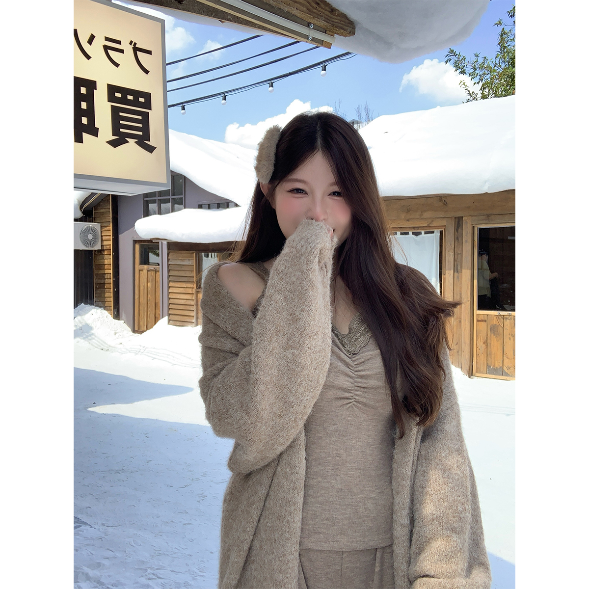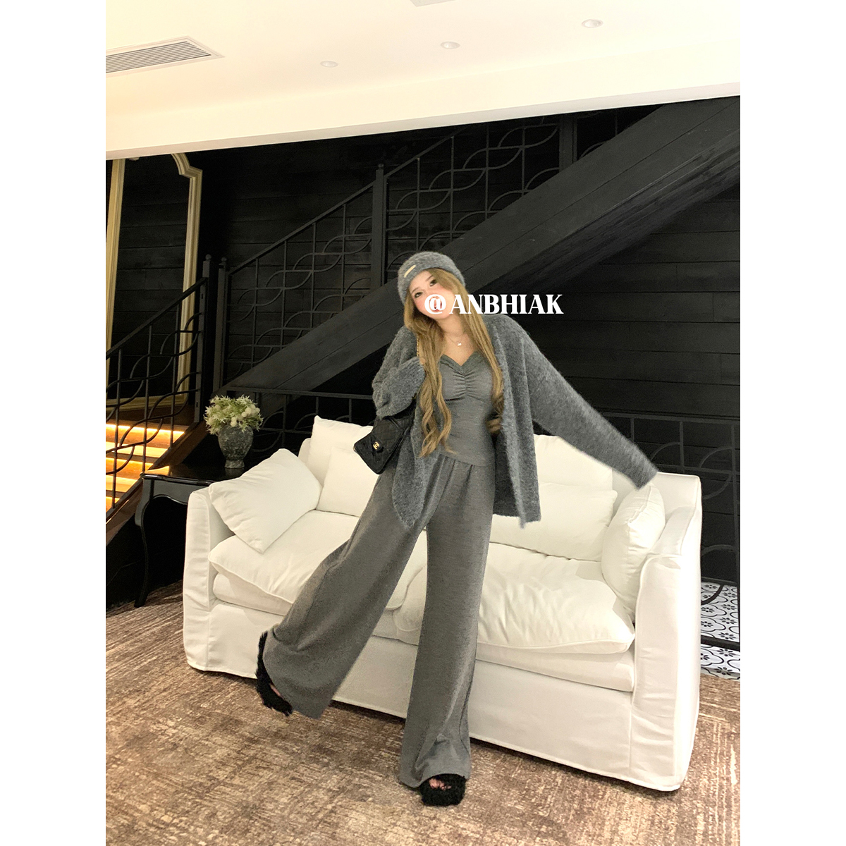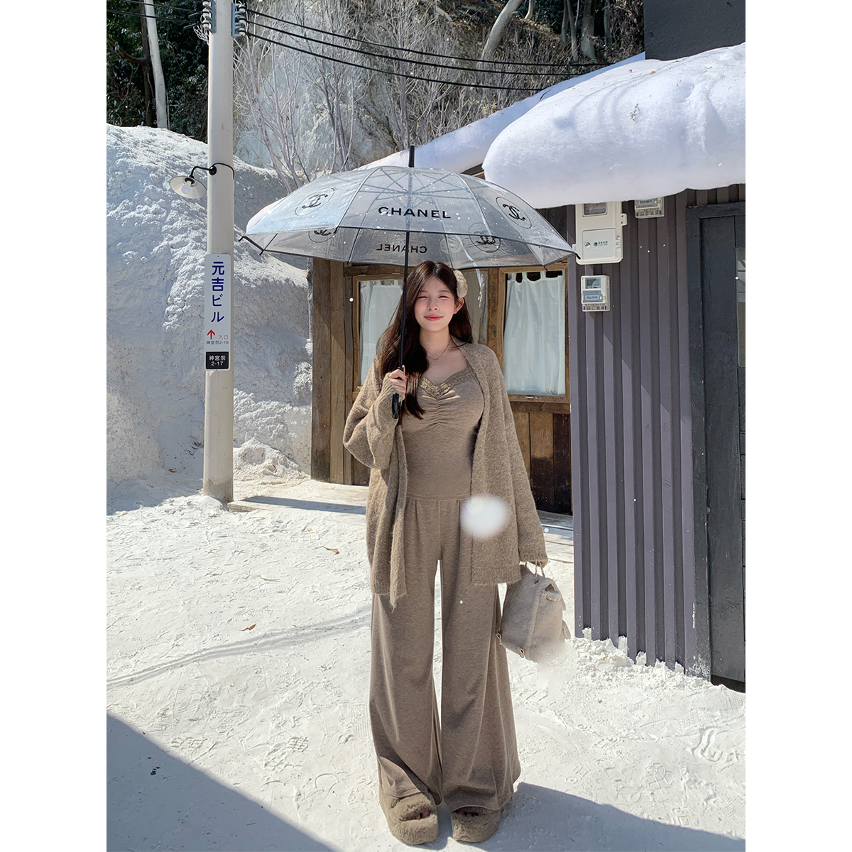 安妮不火 秋日氛围感软糯亲肤毛织三件套女微胖大码休闲保暖套装