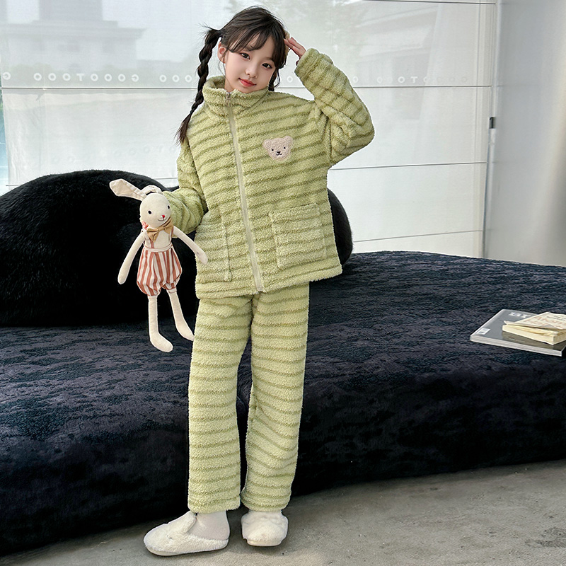 玉婴坊女童珊瑚绒睡衣秋冬款大儿童装冬季法兰绒加厚女孩家居服