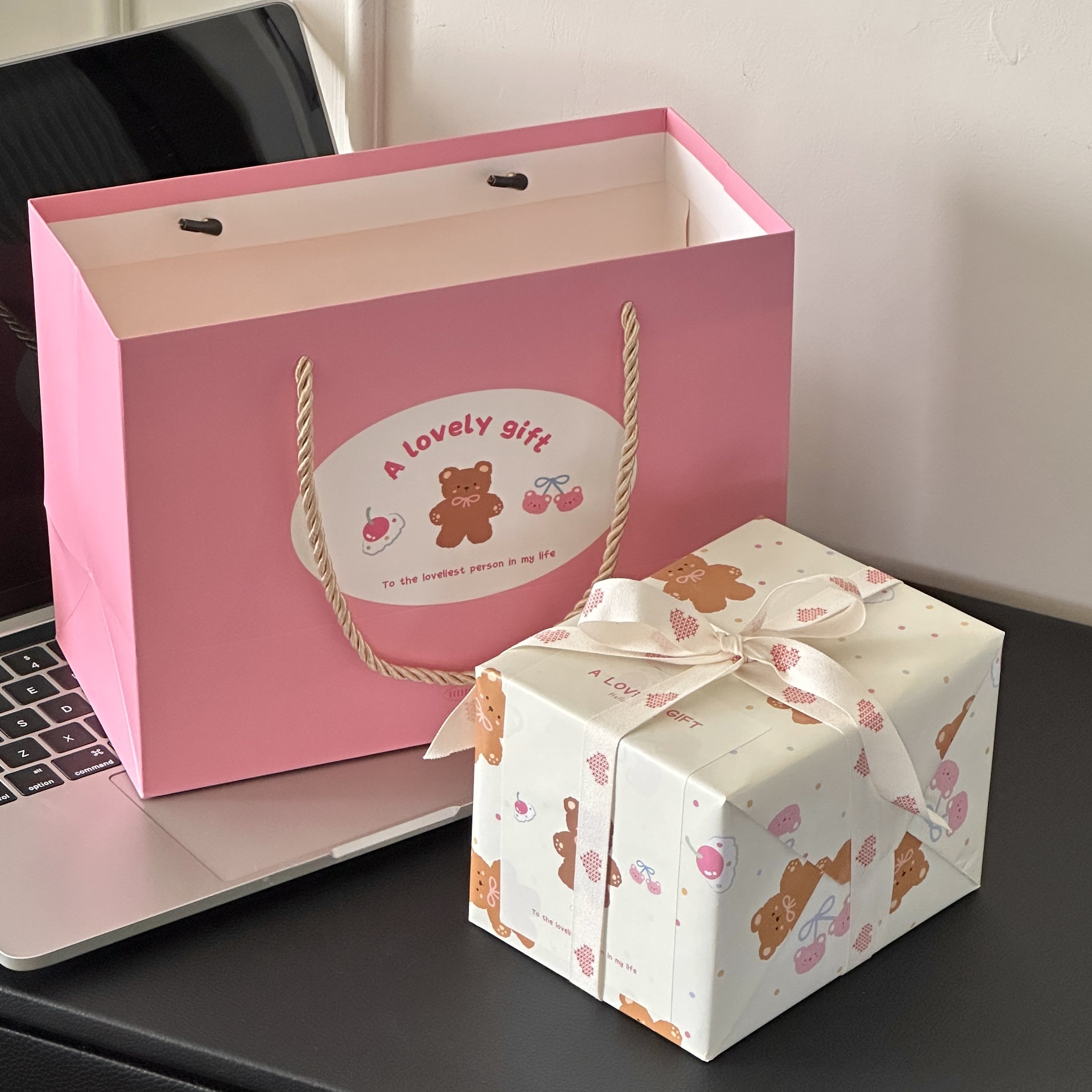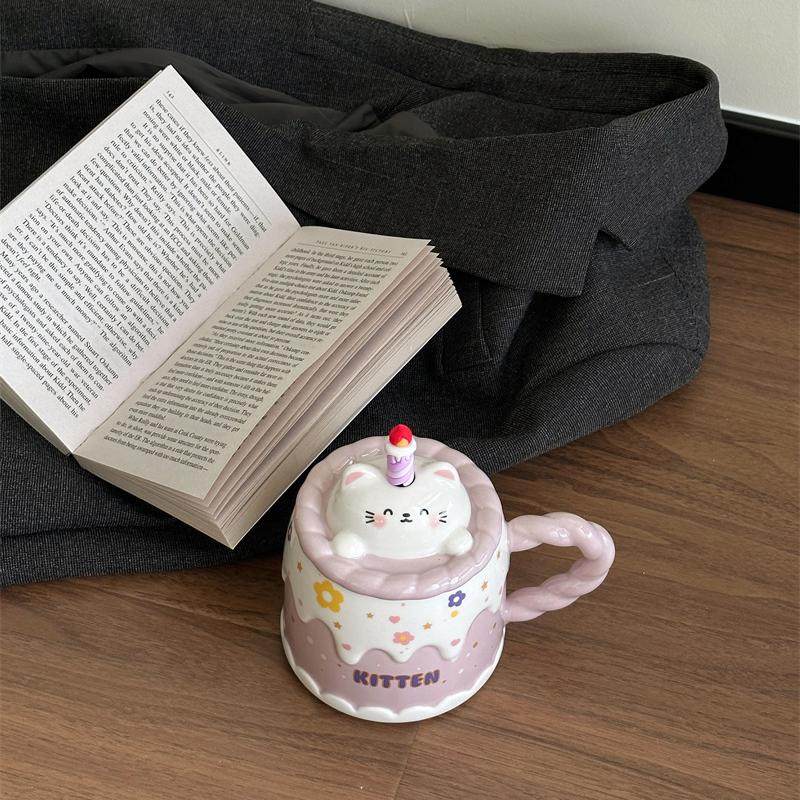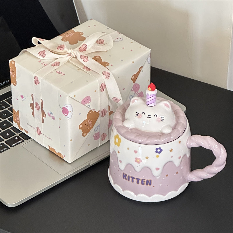 送女生新年礼物礼盒可爱奶油蛋糕小熊卡通带盖马克杯釉下彩水杯