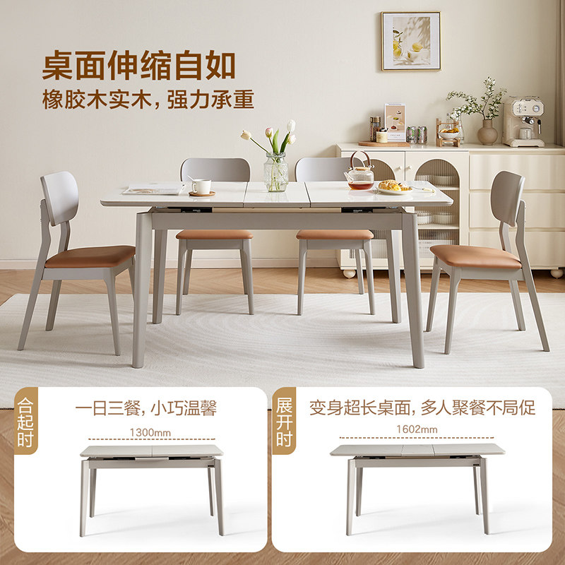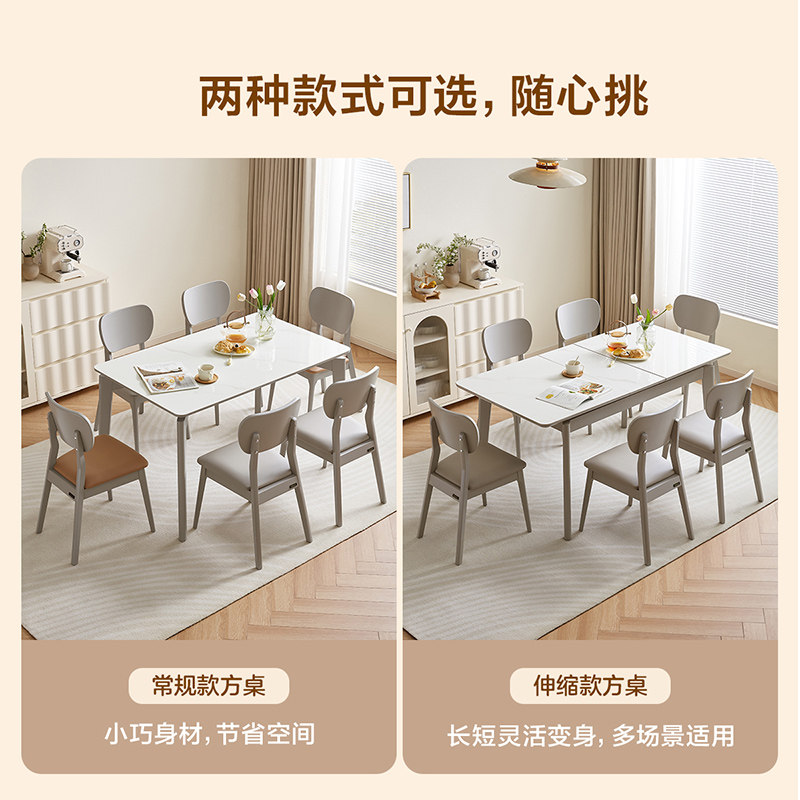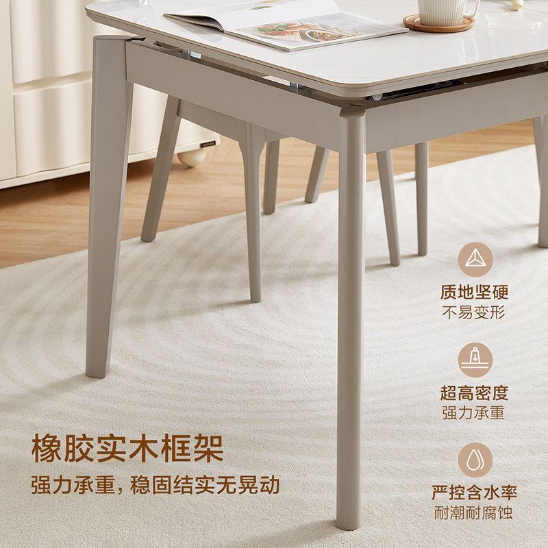 全友家居现代简约岩板餐桌客厅家用长方形可伸缩饭桌椅组合