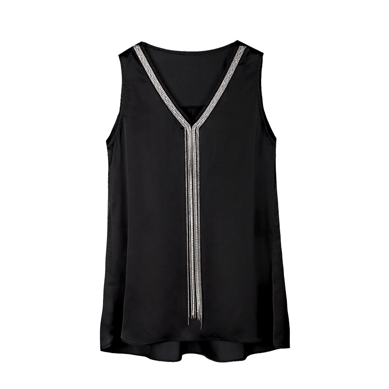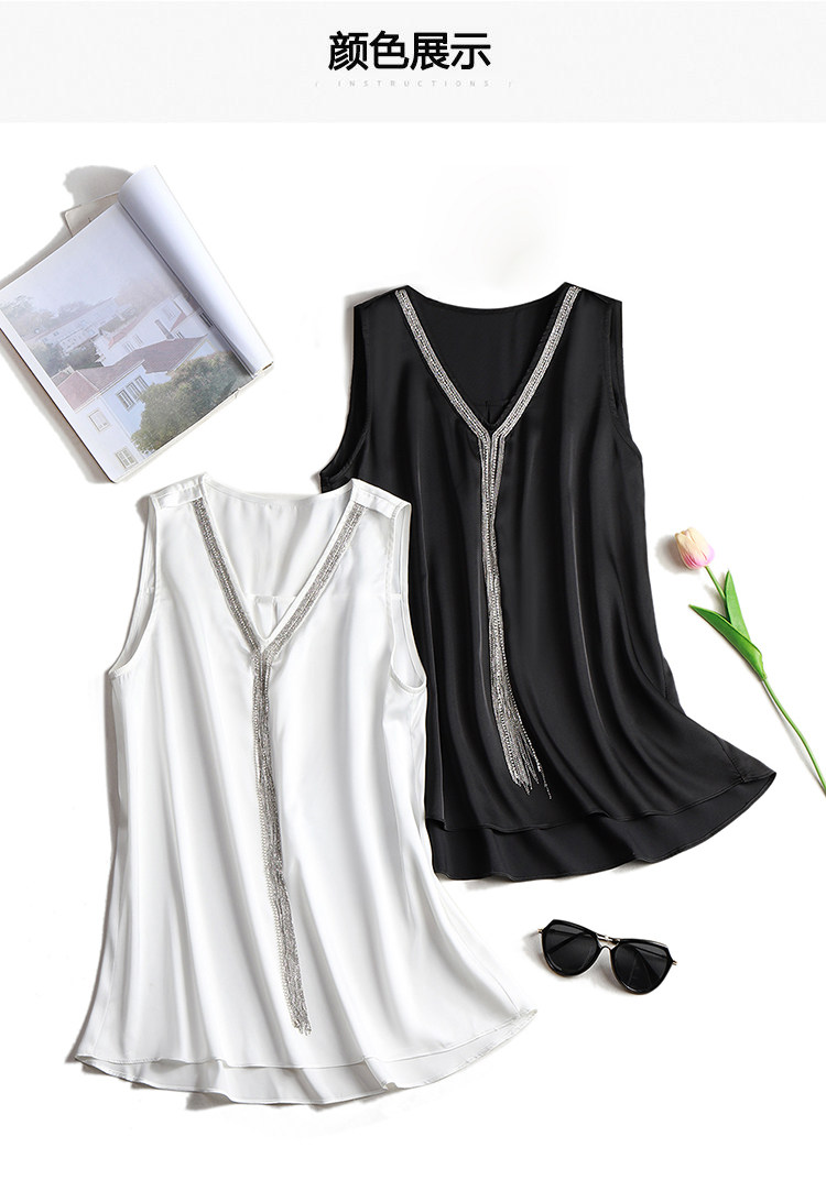 陈数同款吊带背心女春西装打底衫仿真丝宽松无袖衬衫外穿百搭流苏