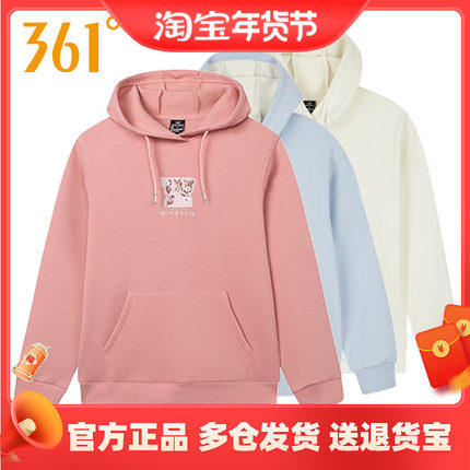 361度女装2023冬季新款宽松连帽套头卫衣印花字母上衣休闲运动服