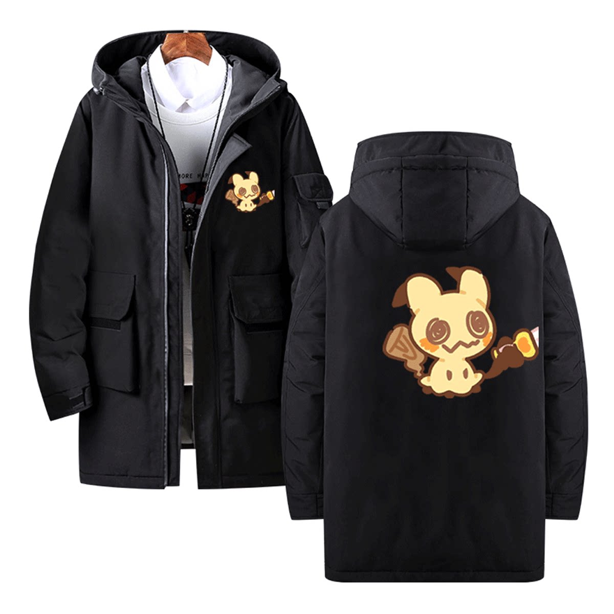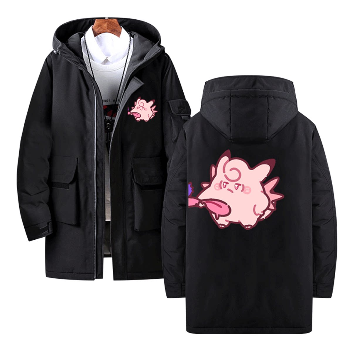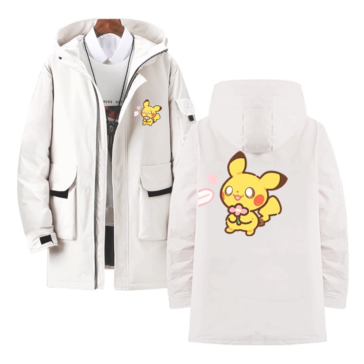 宝可梦印花秋冬百搭男女同款情侣学生连帽可定制中长款卡通羽绒服
