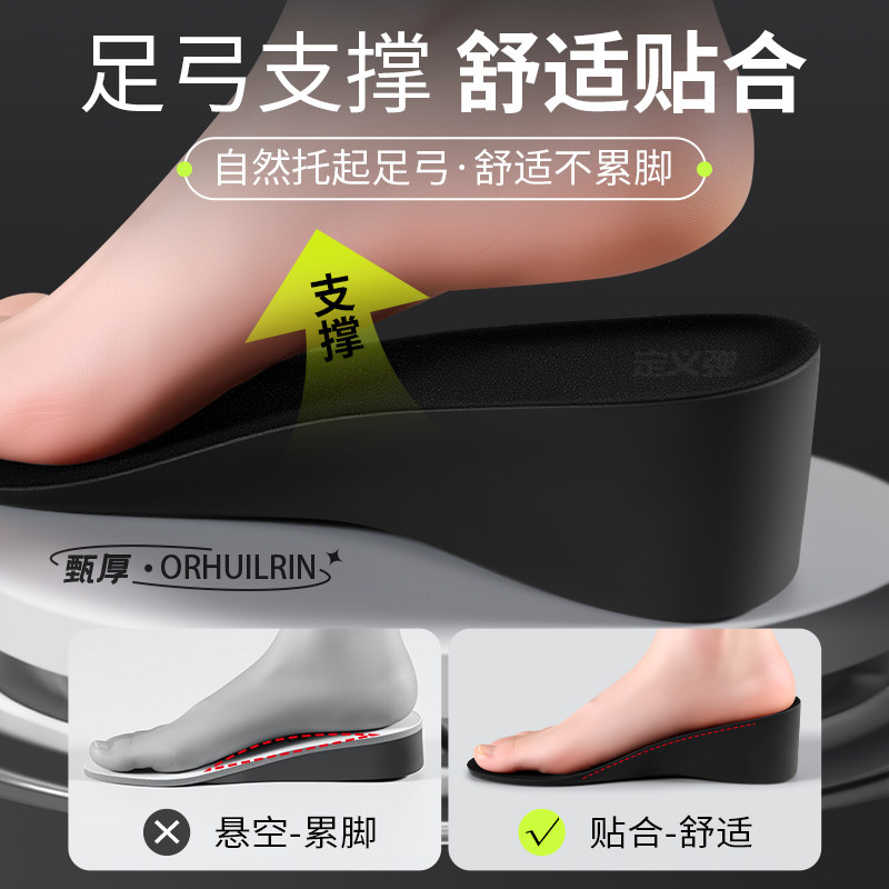 5cm增高鞋垫5厘米男士久站不累脚隐形内增高垫不塌陷足弓支撑硬底