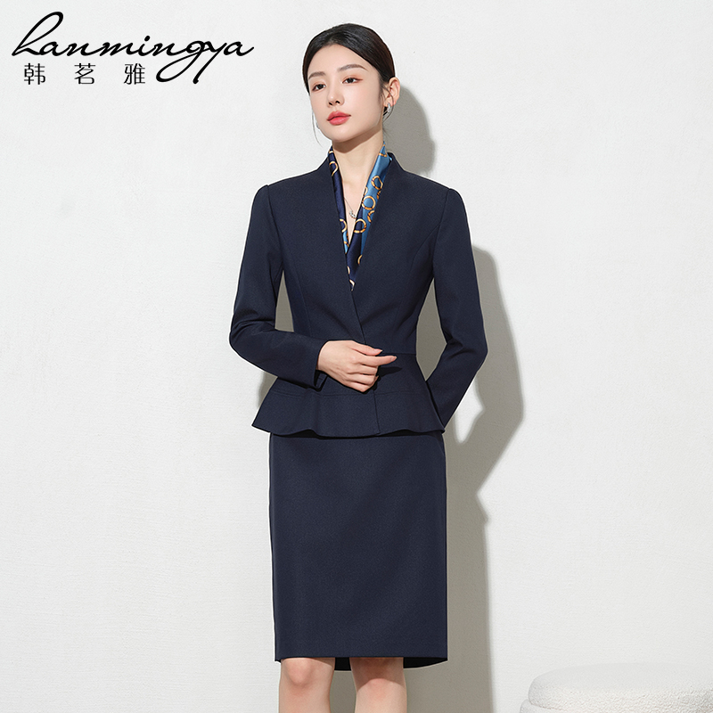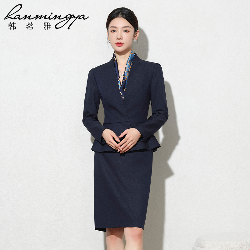 韩茗雅高端职业女裙套装藏青色2025春秋西装外套时尚美容师工作服