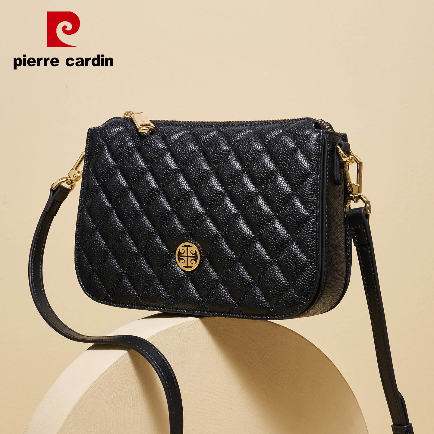 皮尔卡丹菱格小方包2026新款女包休闲通勤小香风马鞍包单肩斜挎包