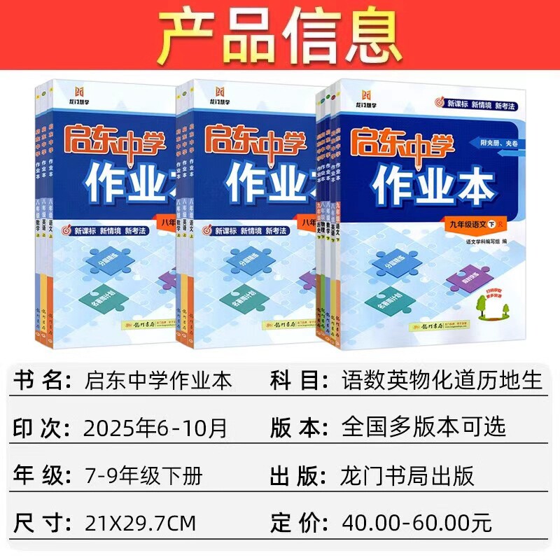 2026春启东中学作业本七八九年级上册下册人教版语文数学英语物理同步练习册初中课时作业本教材专项789教辅启动同步复习