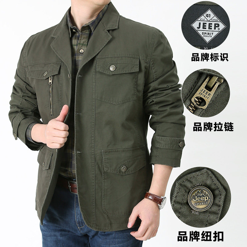 JEEP吉普官方正品牌男装西装领夹克中年男士秋冬战地休闲西服外套