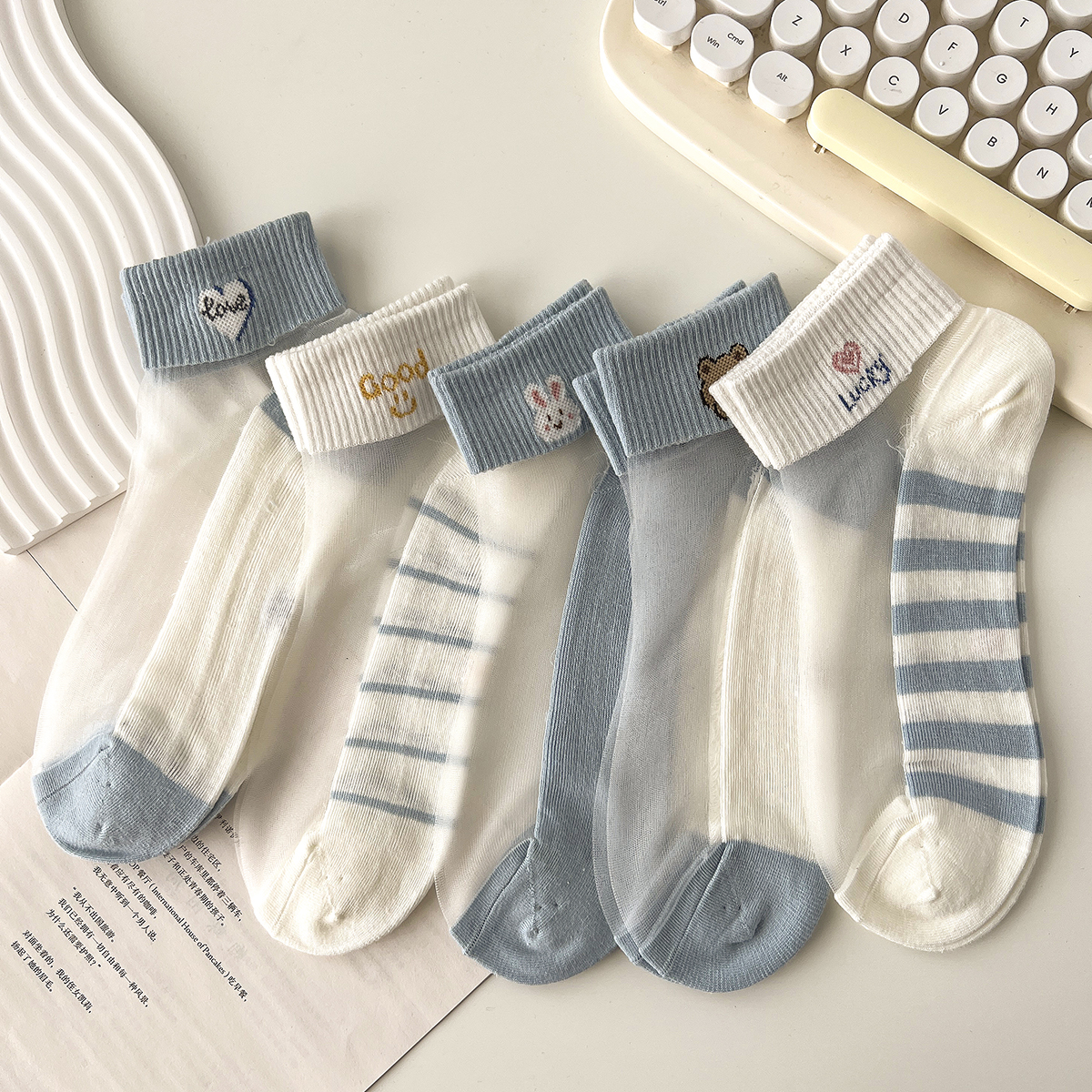 袜子女短袜薄款夏季浅口水晶玻璃丝船袜ins潮透气抗菌防臭运动袜