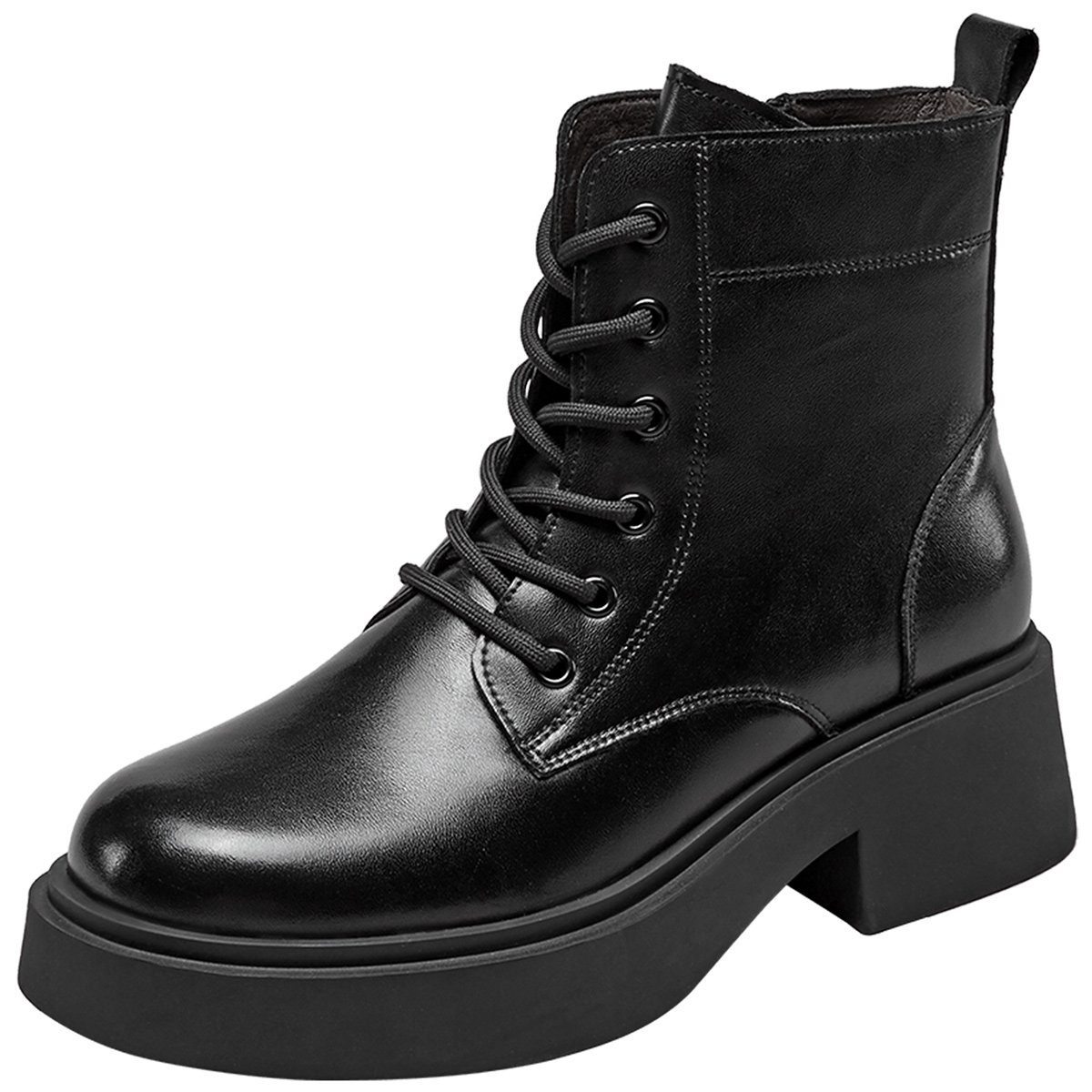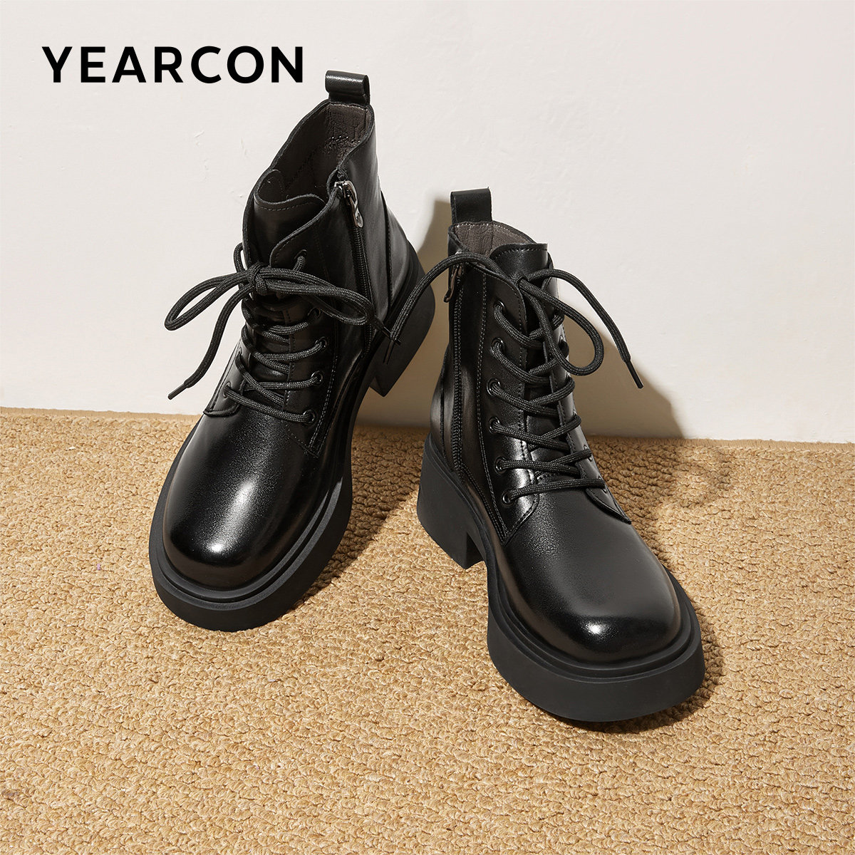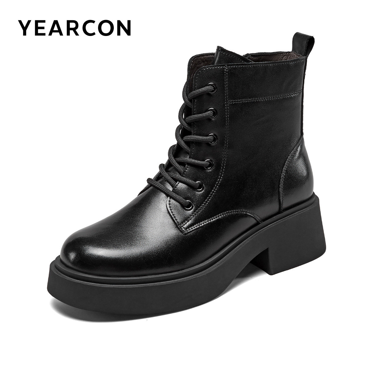 意尔康官方正品女鞋女靴时尚休闲百搭英伦风系带马丁靴黑色舒适