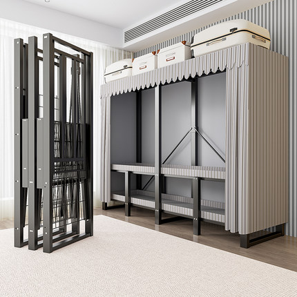 折叠衣柜家用卧室简易布衣柜免安装结实耐用出租房用衣橱一体钢架