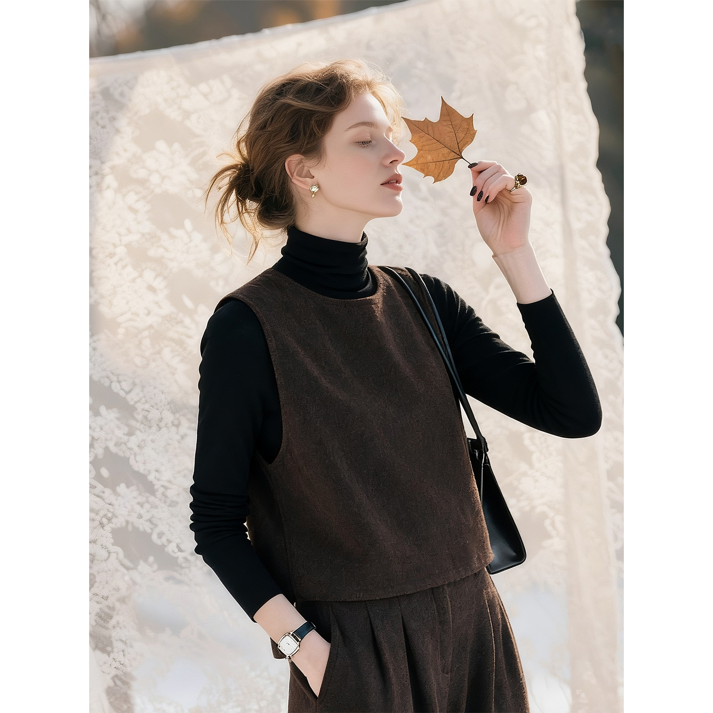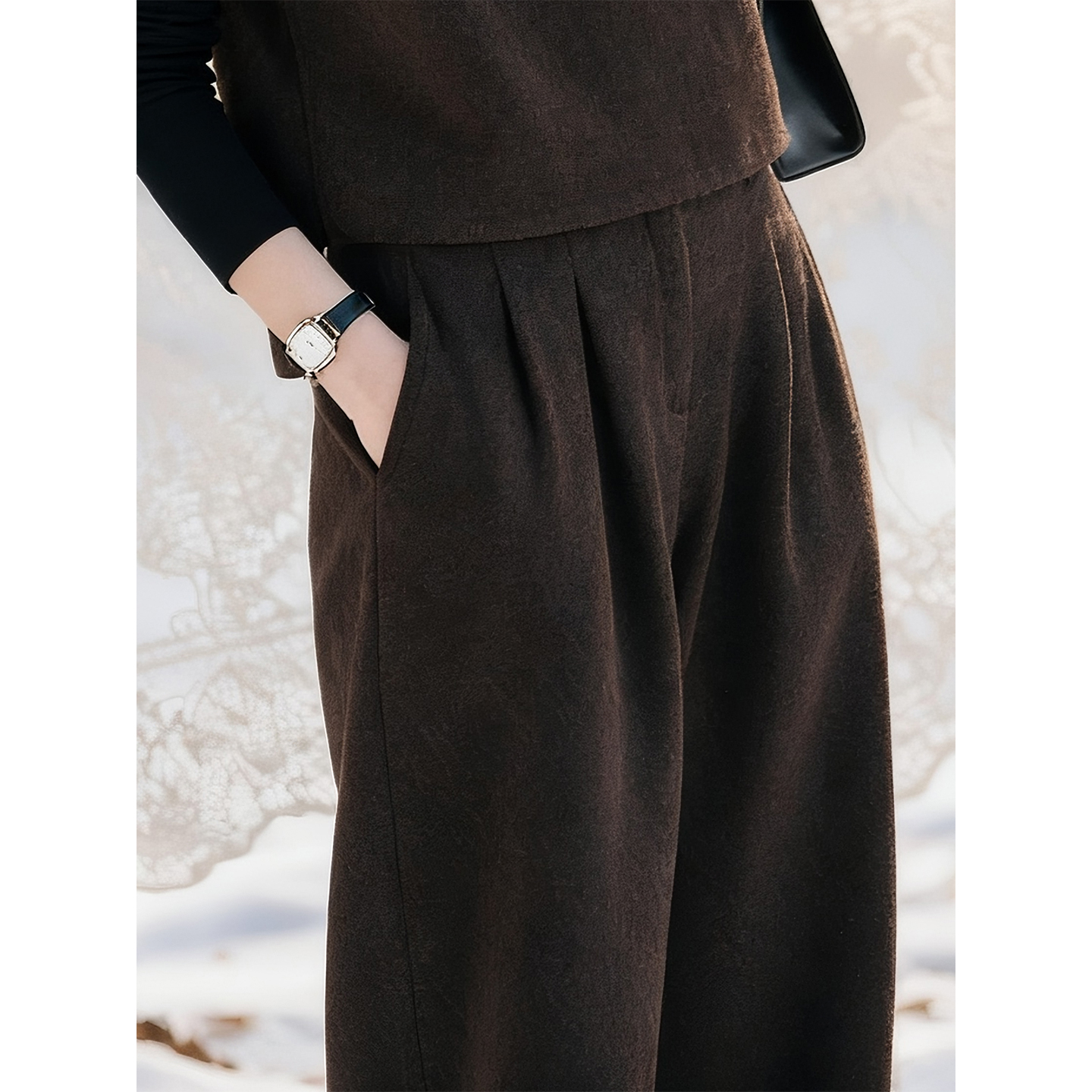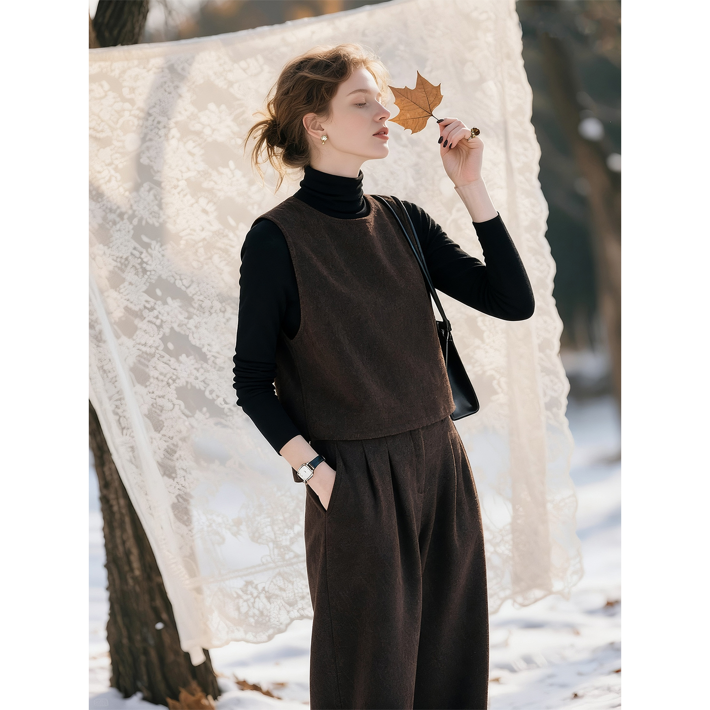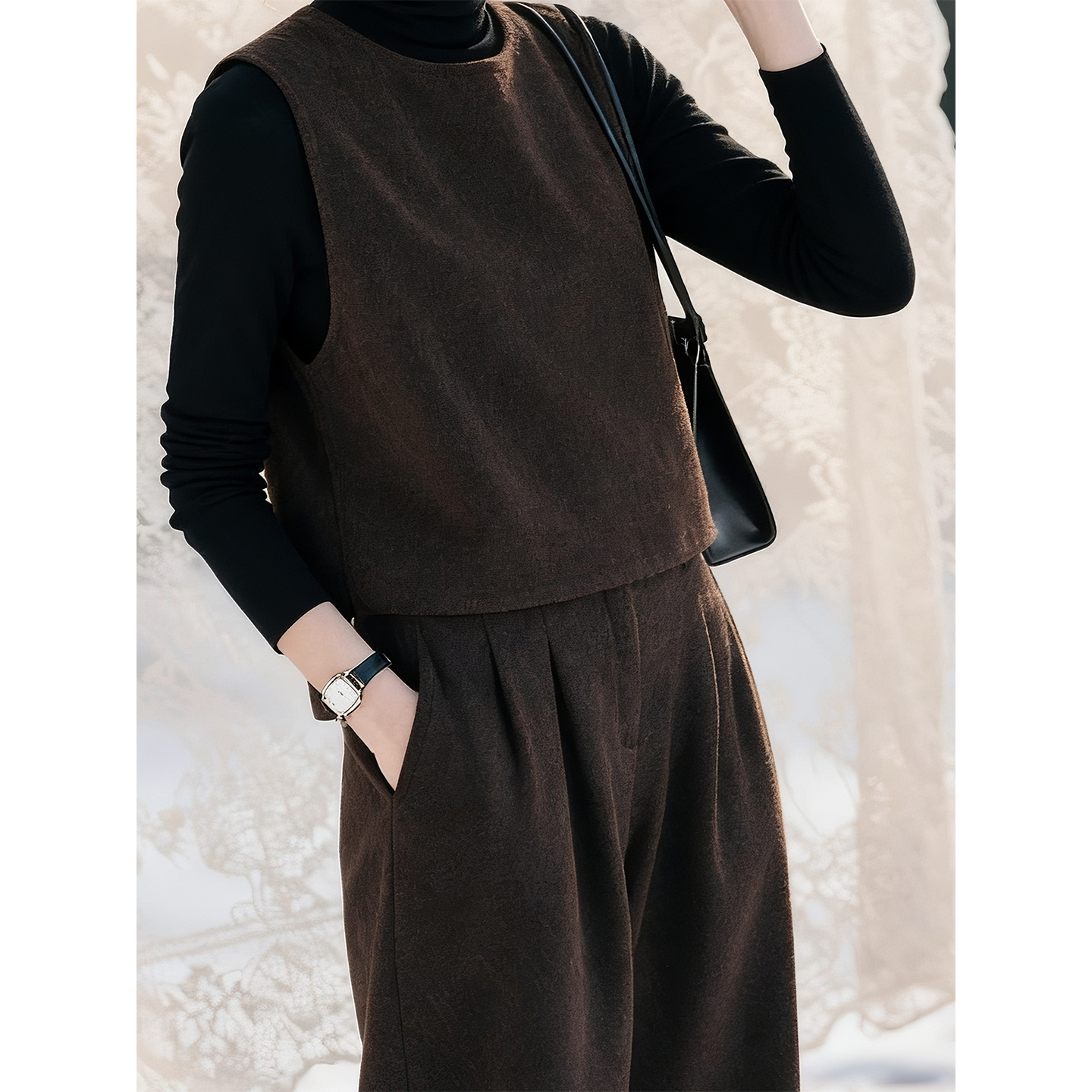 咖色羊毛时尚套装女2025年秋冬穿搭一整套气质马甲阔腿裤两件套