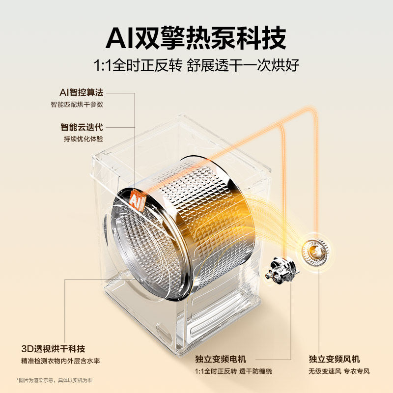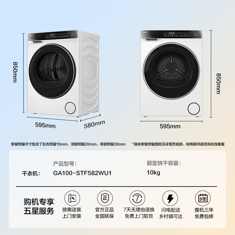 【云溪3.0】海尔582W超薄3D双擎热泵10kg家用全自动滚筒烘干机
