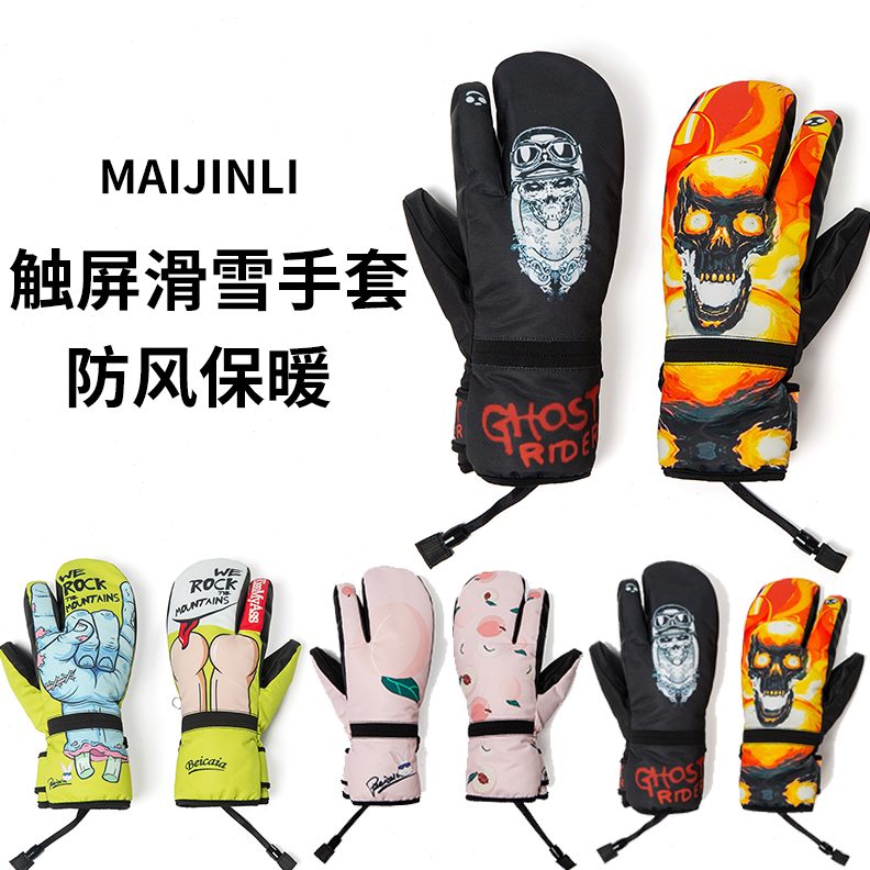 单指滑雪手套双可焖防水指子分三内板触屏耐磨男女保暖滑雪手套