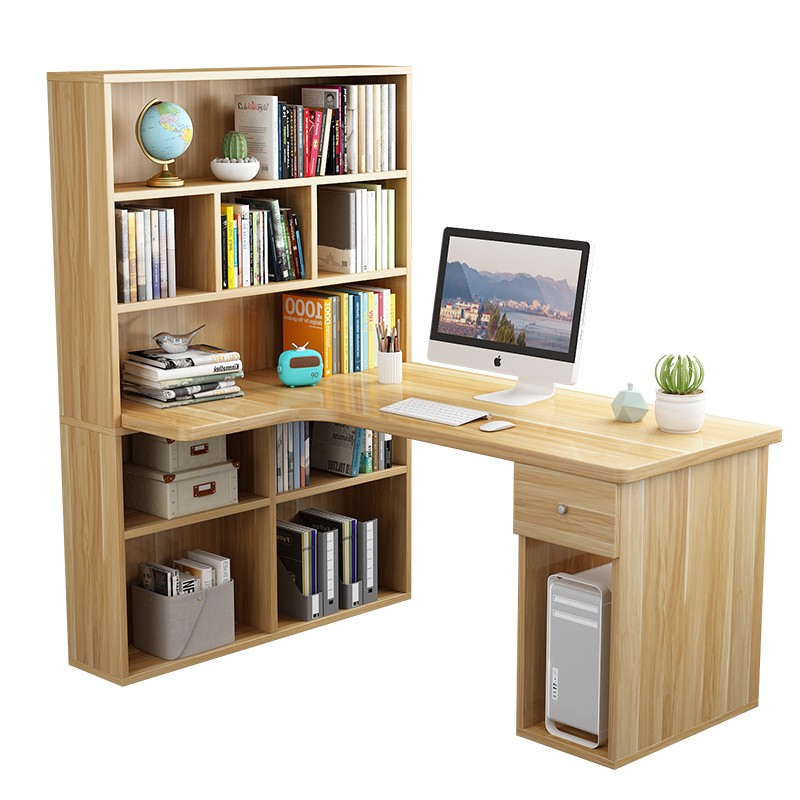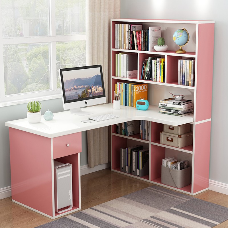 电脑台式桌转角书桌简约家用卧室角落写J字桌书柜书架组合一体桌
