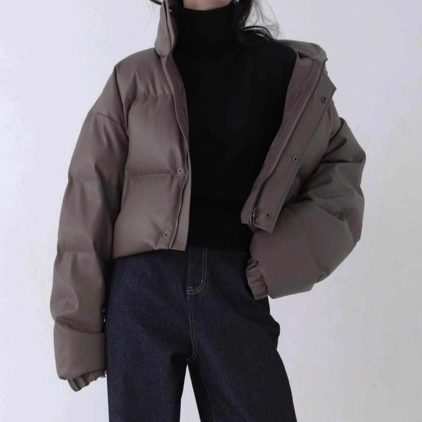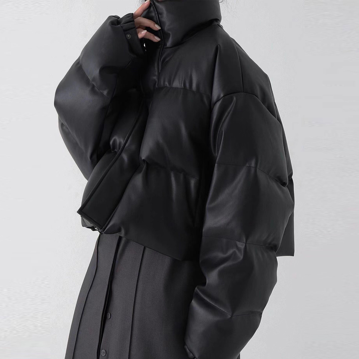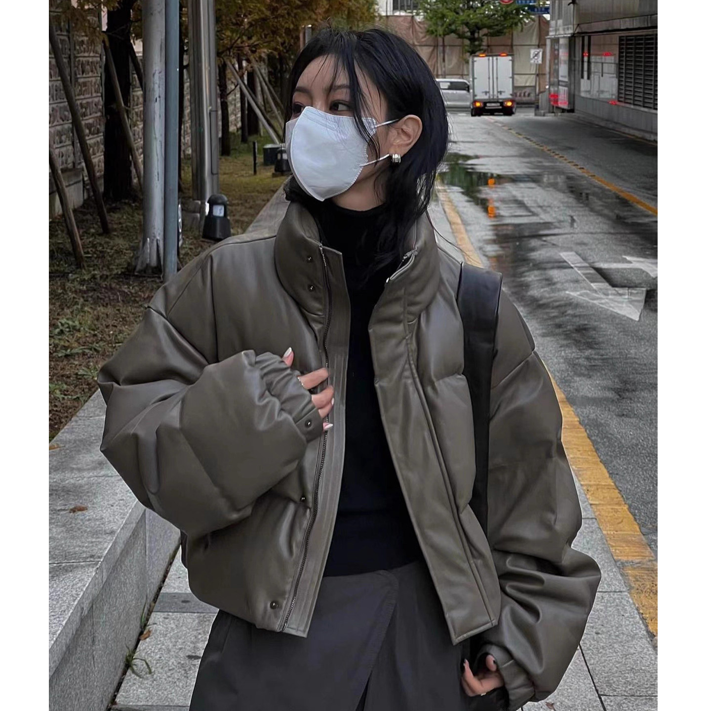 小众百搭立领短款皮衣面包服外套女2025冬季新款宽松休闲棉服上衣