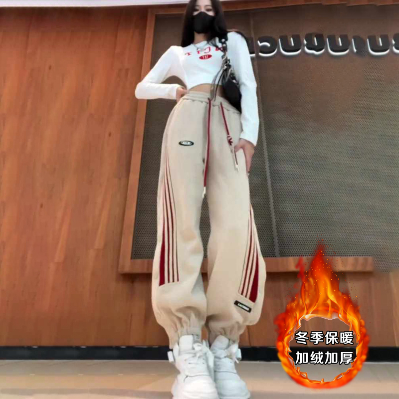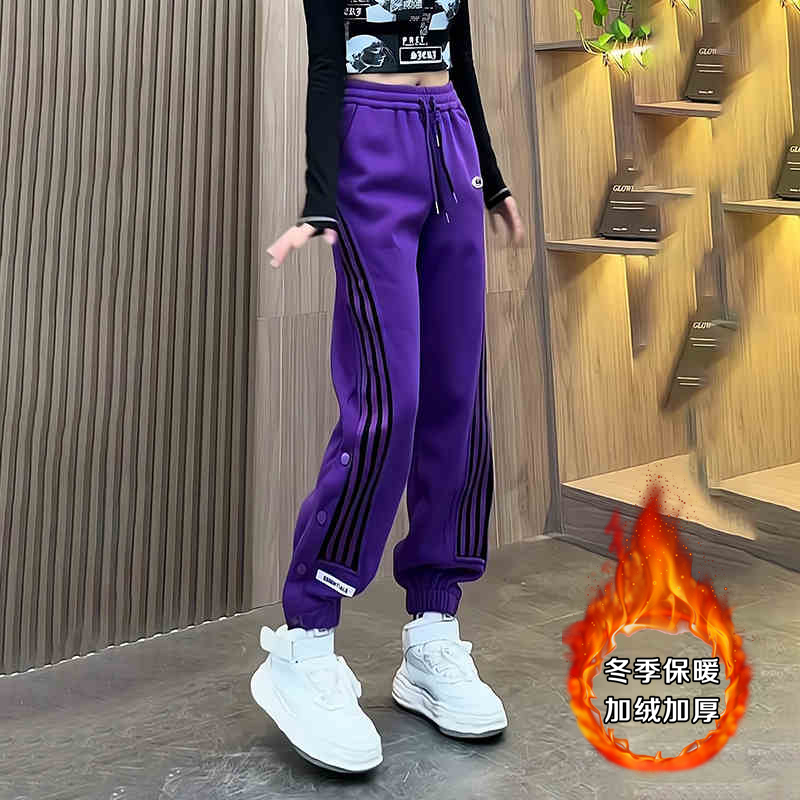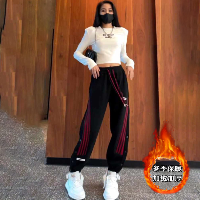 2025新款宽松三杠运动裤男女装秋冬季百搭休闲纽扣束脚哈伦裤