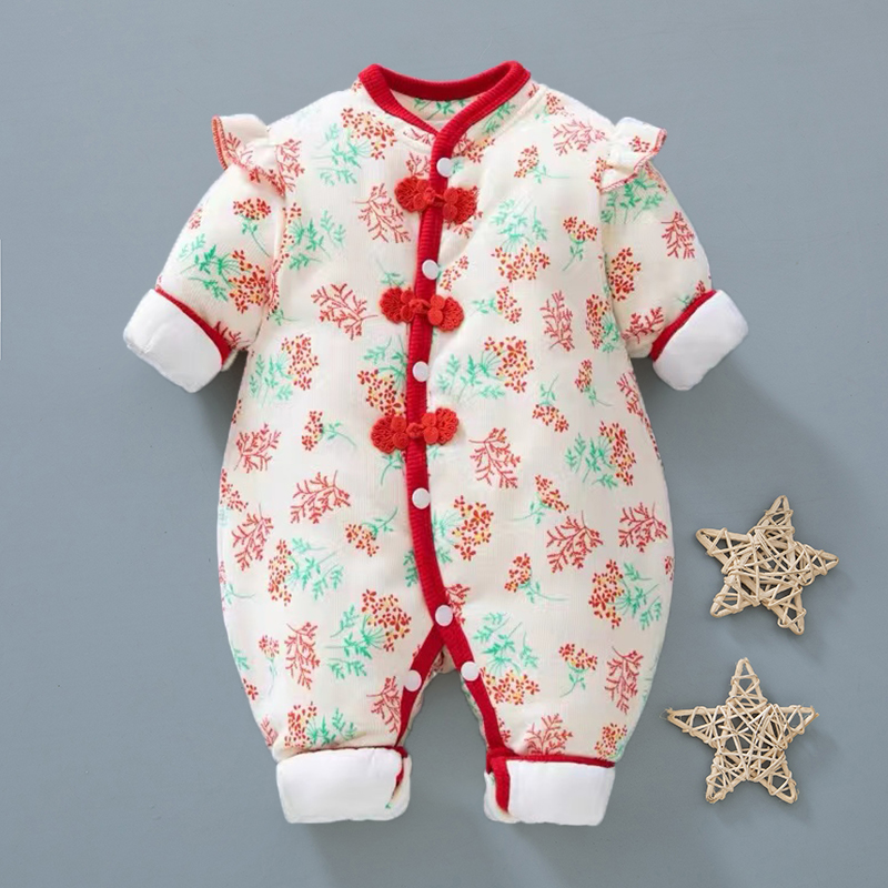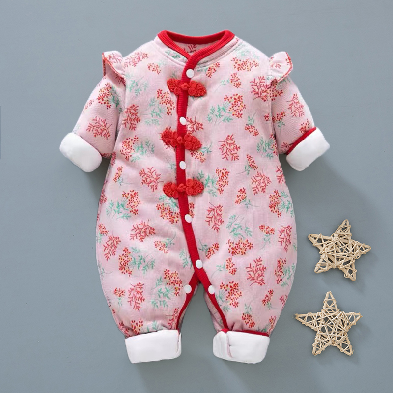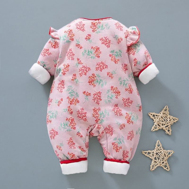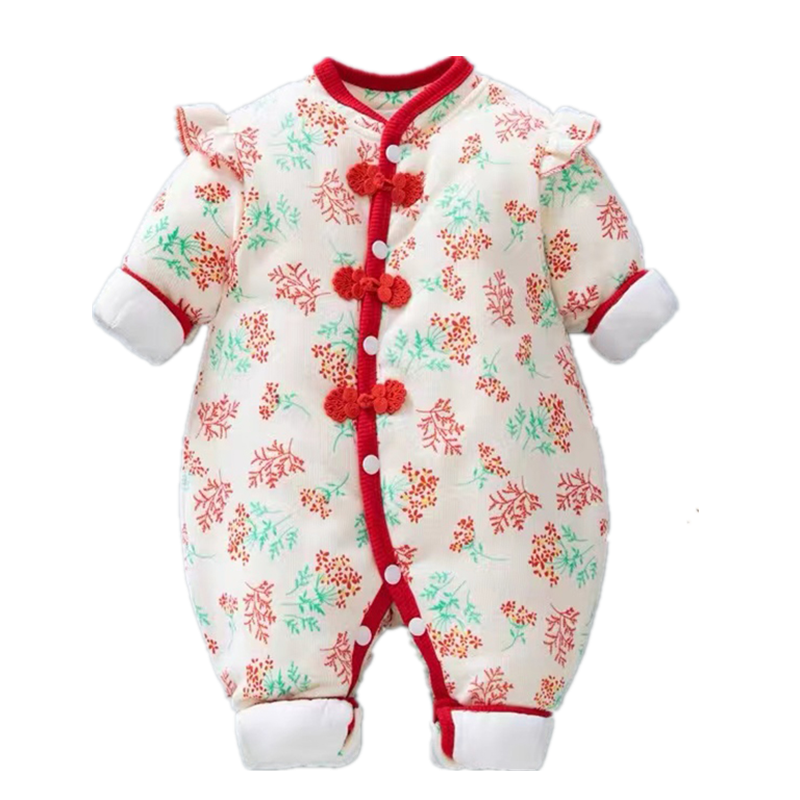新生儿婴儿外出秋冬季爬服女宝宝周岁满月加厚连体衣棉服冬装衣服
