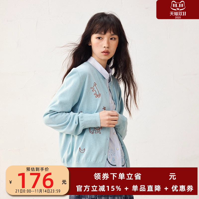 【早春新品】非鱼2025春新款文艺减龄小开衫刺绣女上衣针织外搭