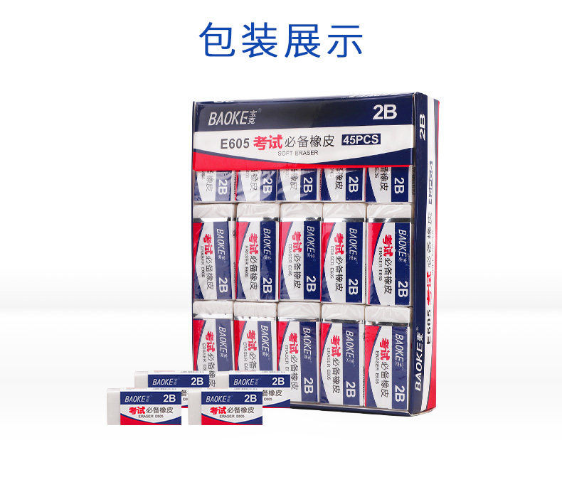 宝克橡皮擦2B考试学生用大块白色块办公文具用品