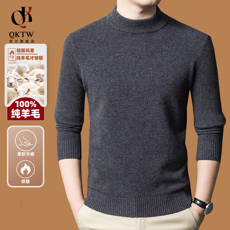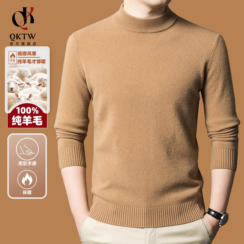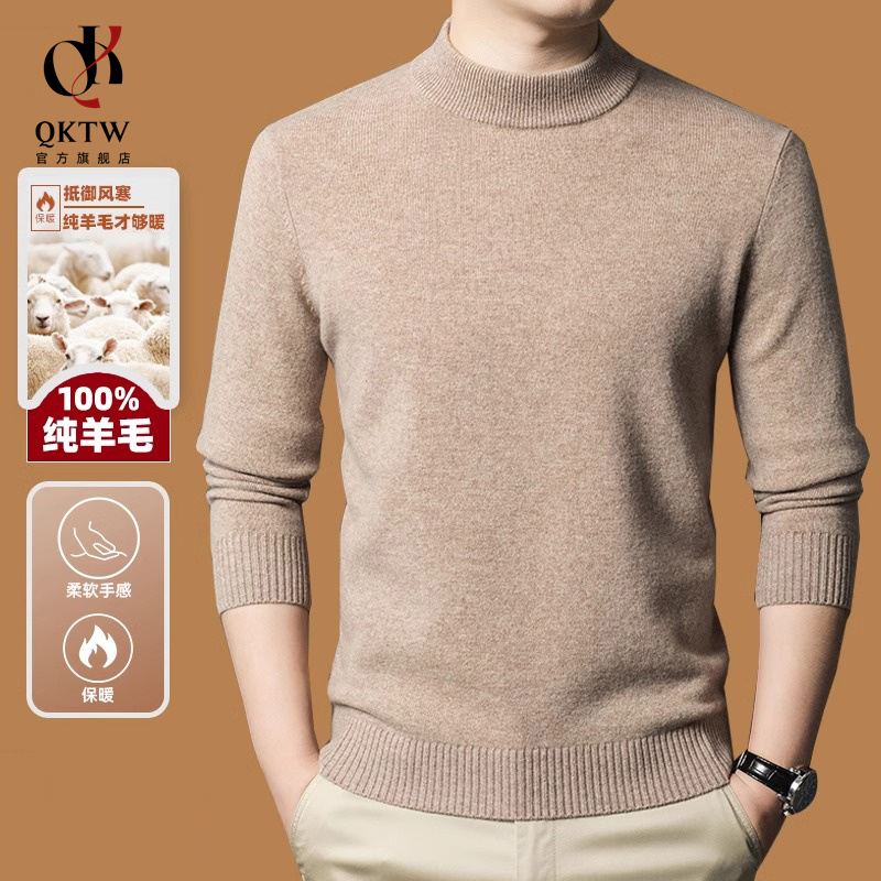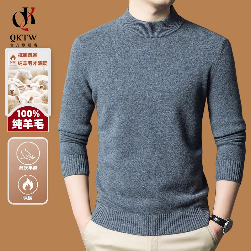 鄂尔多斯市纯羊毛衫男冬季加厚保暖绵羊毛打底衫百搭半高领毛衣