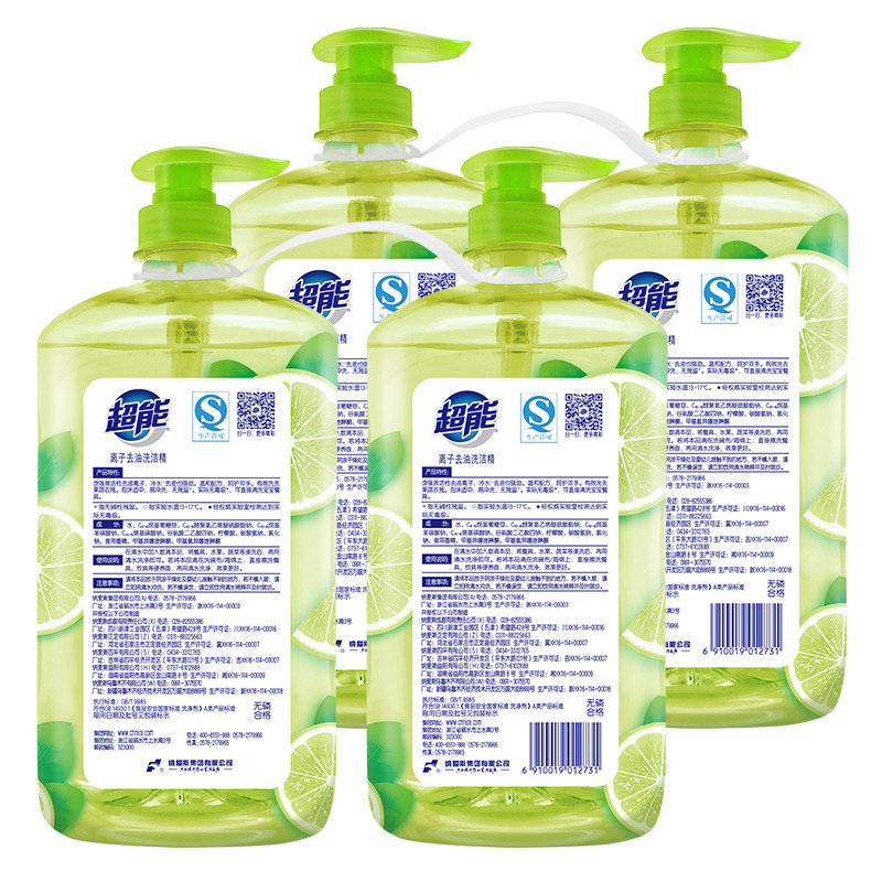 超能离子去油洗洁精柠檬水果护手1.5kg*4瓶家用实惠