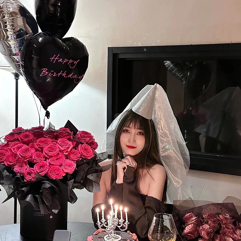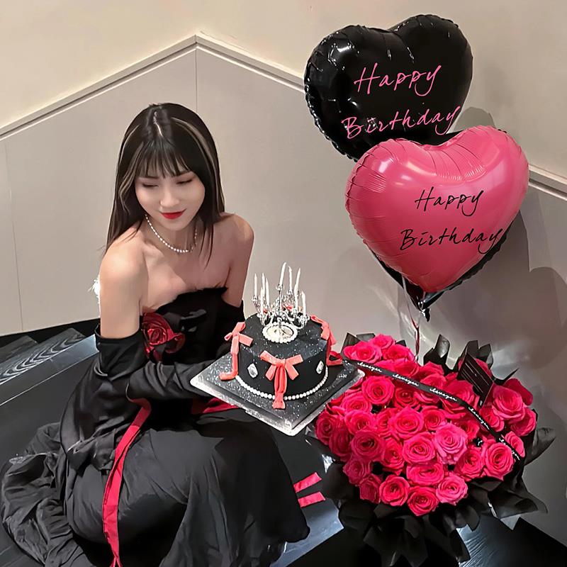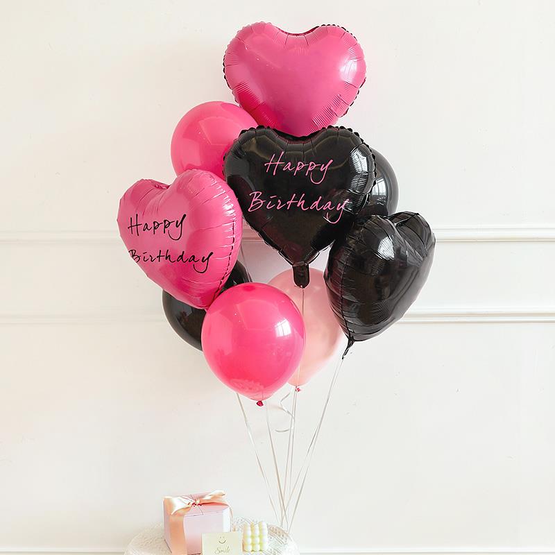 生日快乐爱心铝膜网红气球飘空装饰黑玫红色主题派对背景场景布置