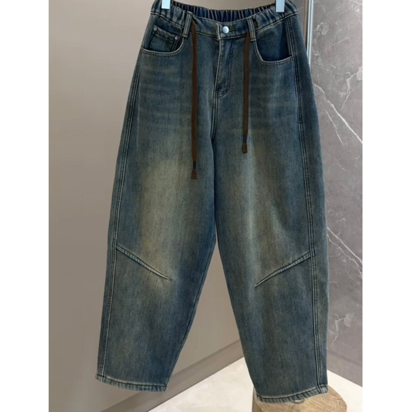洋气加绒新款加厚牛仔哈伦裤女大码松紧腰宽松阔腿遮肉显瘦老爹裤