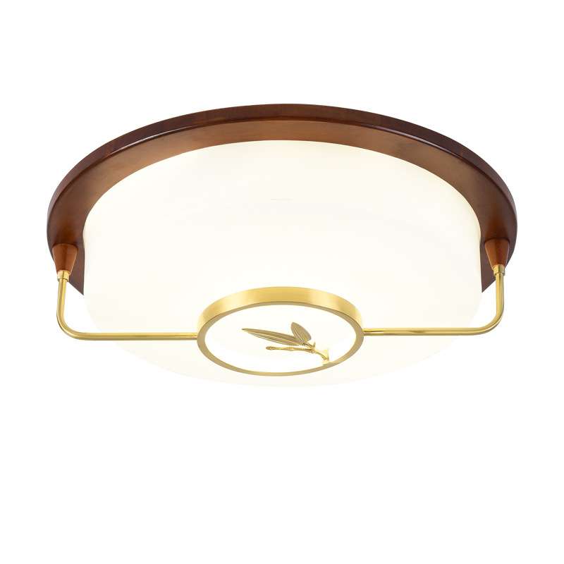 新中式led吸顶灯长方形客厅灯 实木全铜灯具现代简约房间主卧室灯