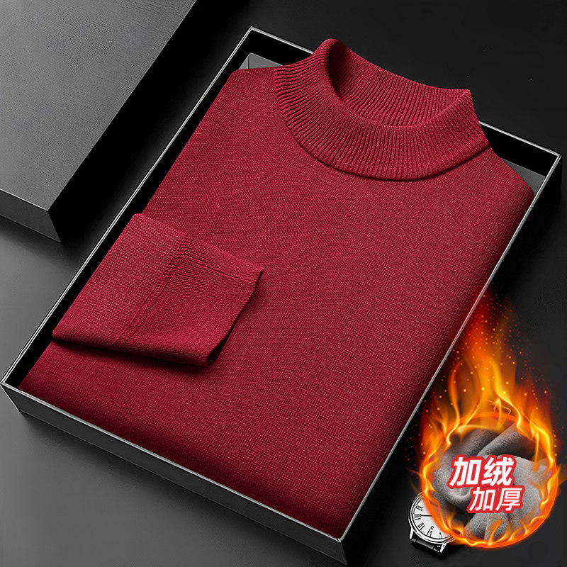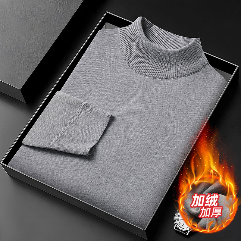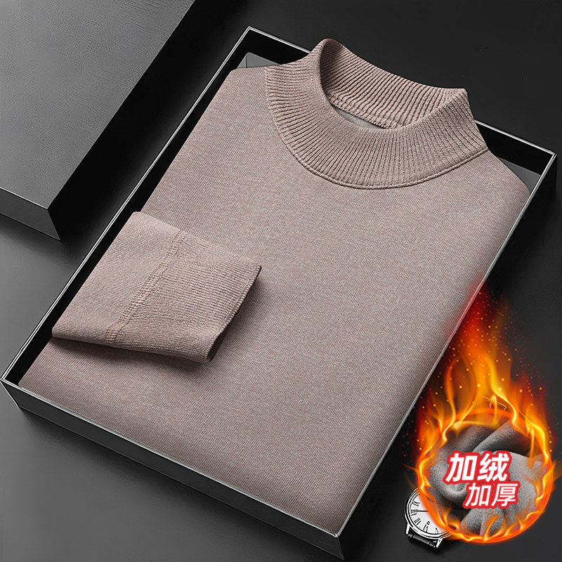 男士德绒衫半高领加绒加厚高档针织衫保暖毛衣极简风纯色打底衫男