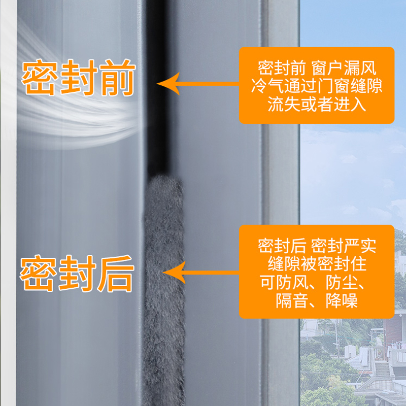 推拉窗密封条铝合金塑钢门窗门缝毛条玻璃条窗户挡风神器防风封条