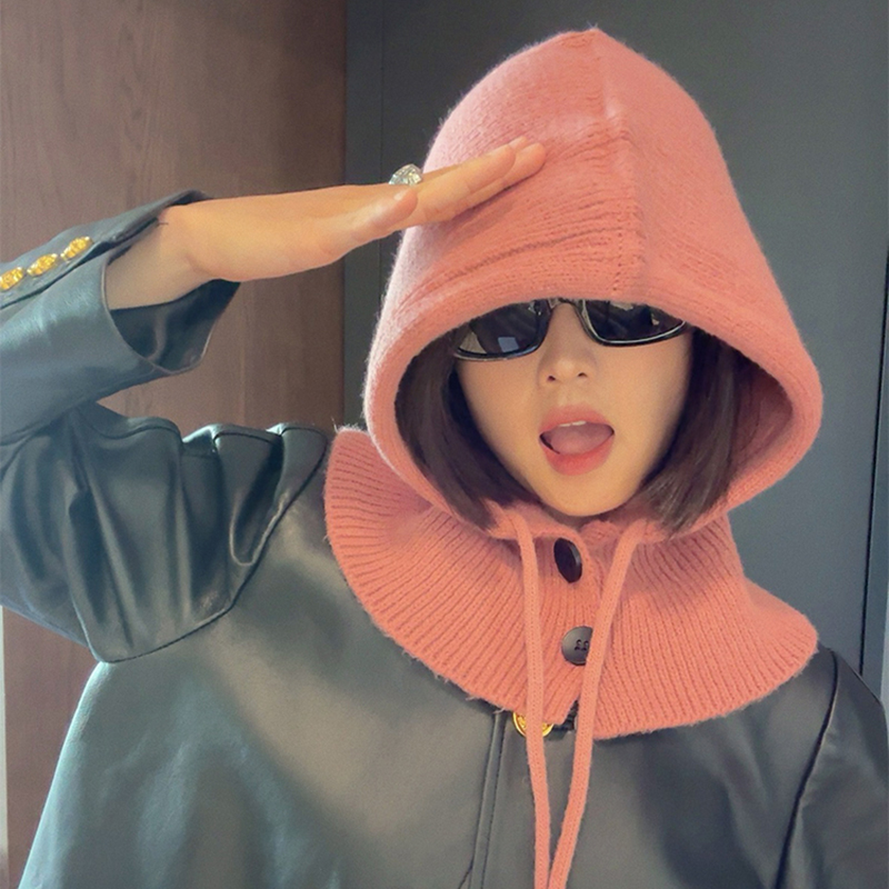 韩国巴拉克拉发帽子女秋冬季毛线针织帽韩版护耳脖套保暖连帽围巾