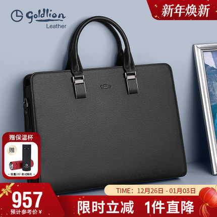金利来简约手提包男轻奢时尚大容量公文包牛皮商务通勤出差男包