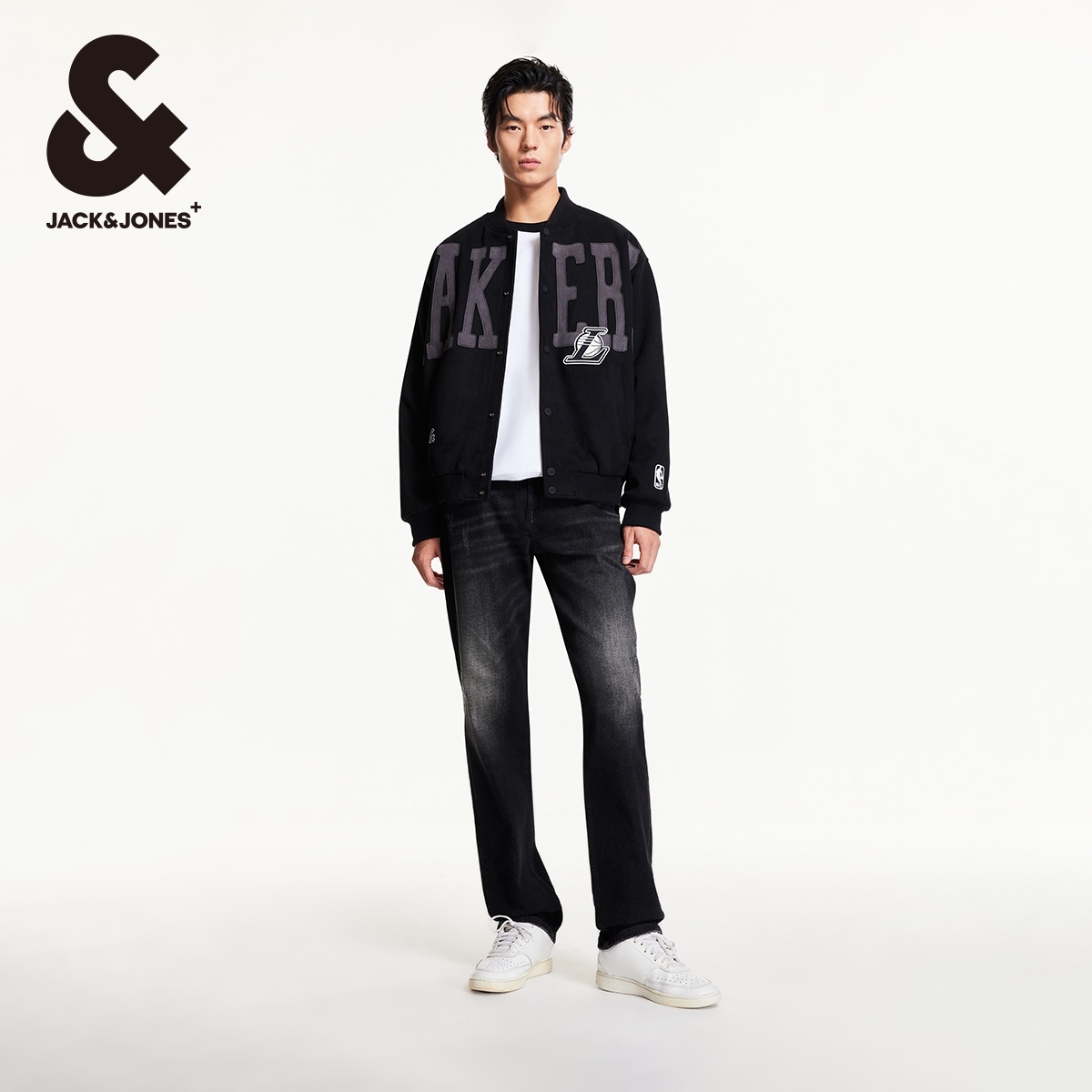 杰克琼斯奥特莱斯NBA联名湖人队男装秋季夹克棒球领长袖外套