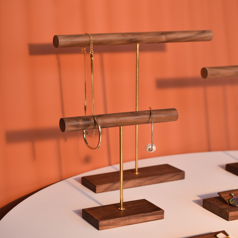 凡岩陈列 家用商用黑胡桃木项链实木展示陈列架 耳环手链饰品架子