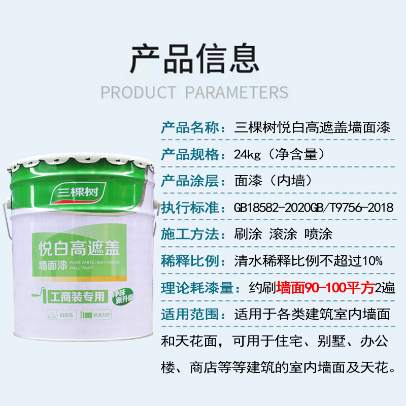 48斤三棵树悦白高遮盖 白色内墙漆乳胶漆墙面漆防霉环保油漆涂料