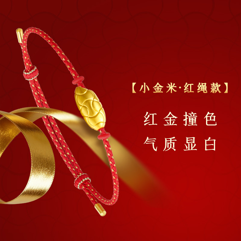 【常华森同款】老庙黄金马上有米小金米红金手绳5D立体转运珠