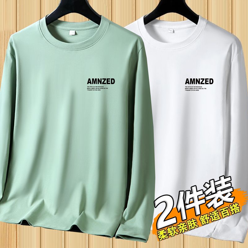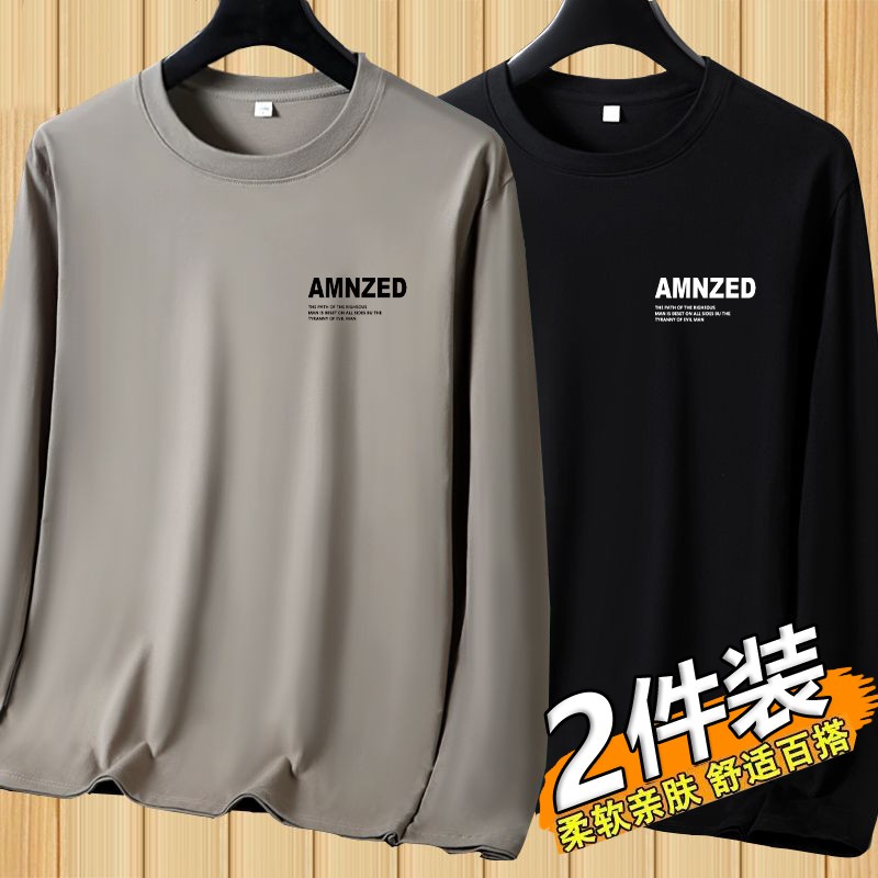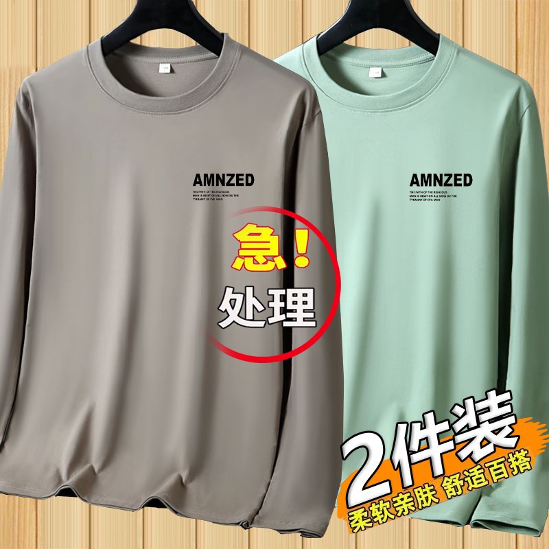 耐脏耐磨上班服纯棉秋季男士长袖t恤纯色打底衫宽松大码全棉秋衣