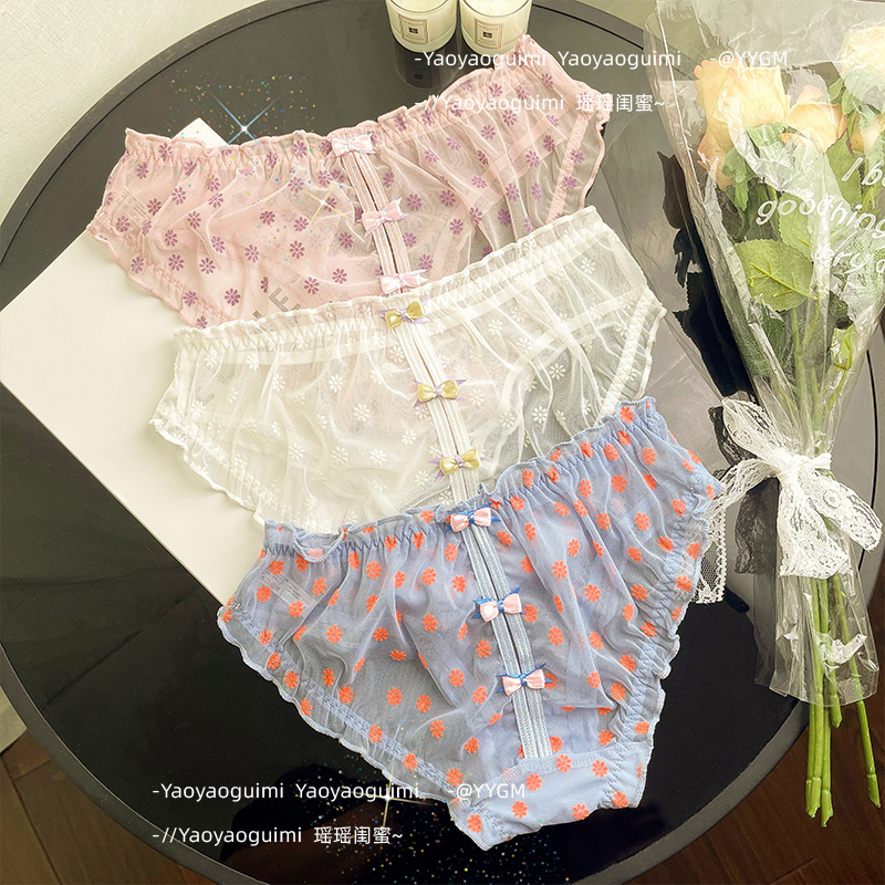 瑶瑶闺蜜蕾丝网纱内裤女性感低腰提臀时尚少女印花蝴蝶结三角裤头