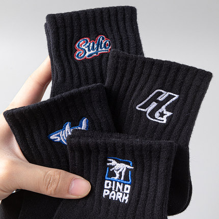 袜子防臭男秋季吸汗100%全棉抗菌中筒男士黑色纯棉运动大码袜春秋