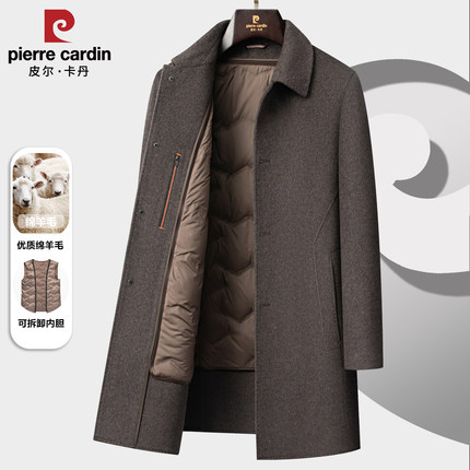 皮尔卡丹羊毛大衣中长款男羊绒风衣羽绒内胆中年呢子爸爸商务外套