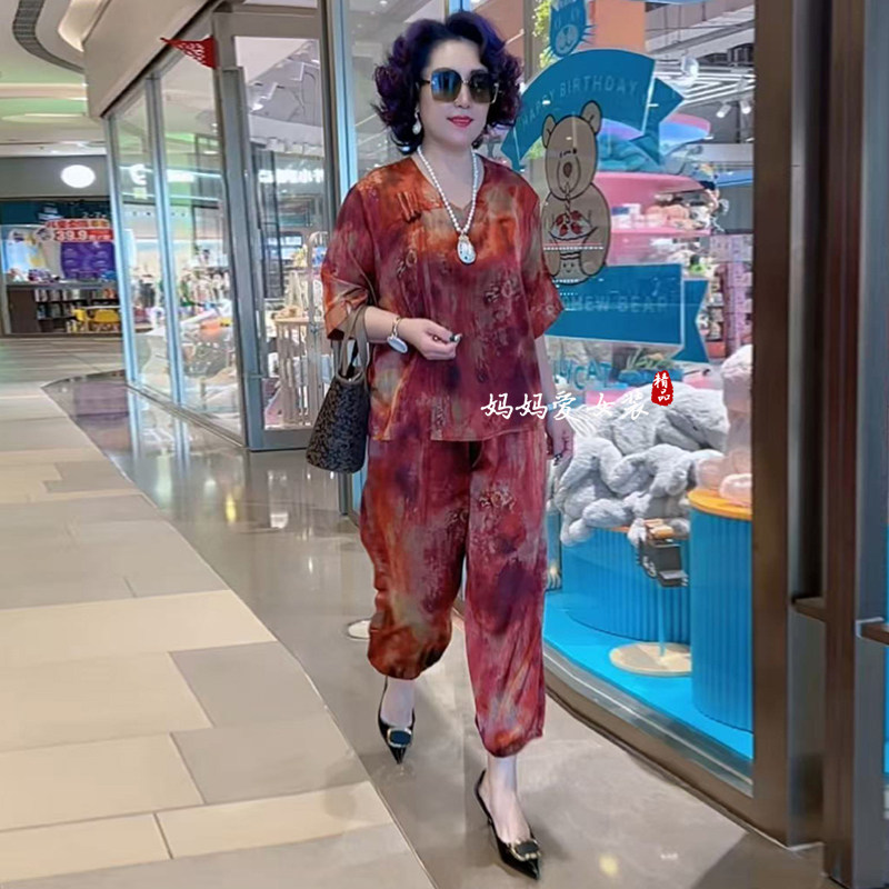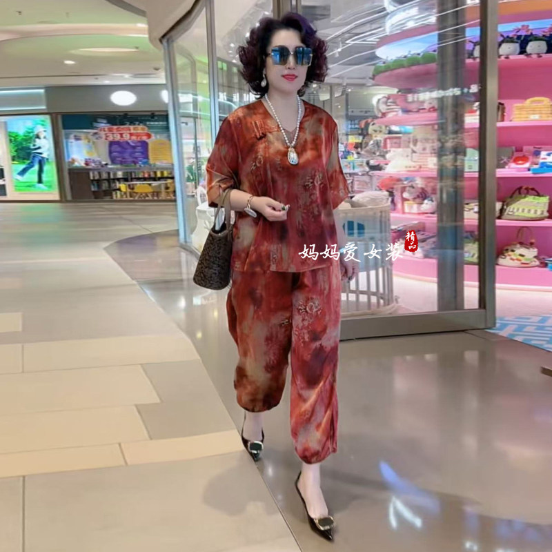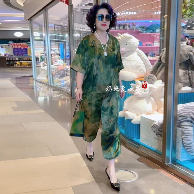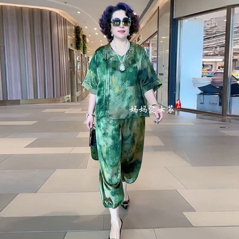 复古妈妈洋气真丝套装2025新款中老年女装阔太太两件套上衣+裤子