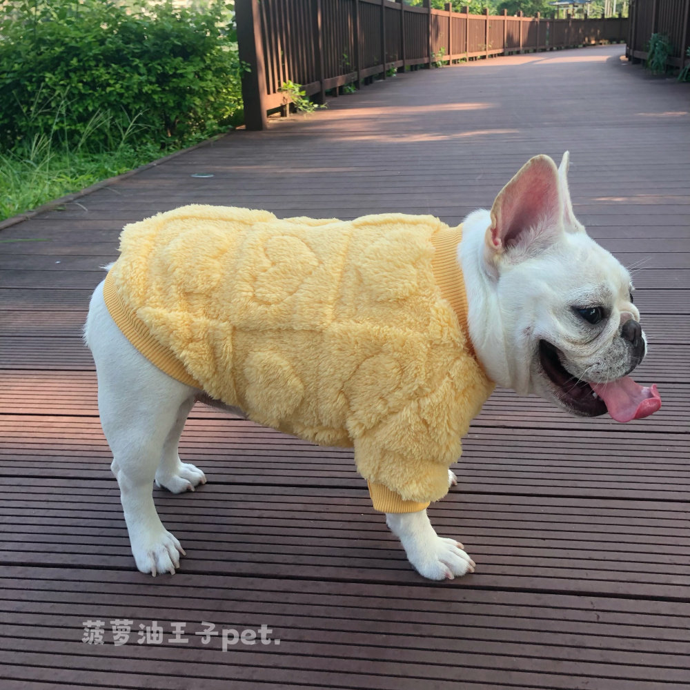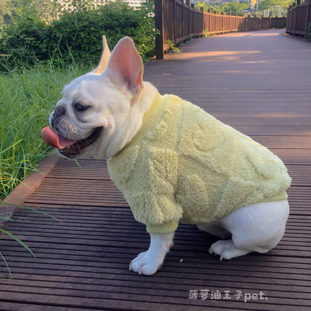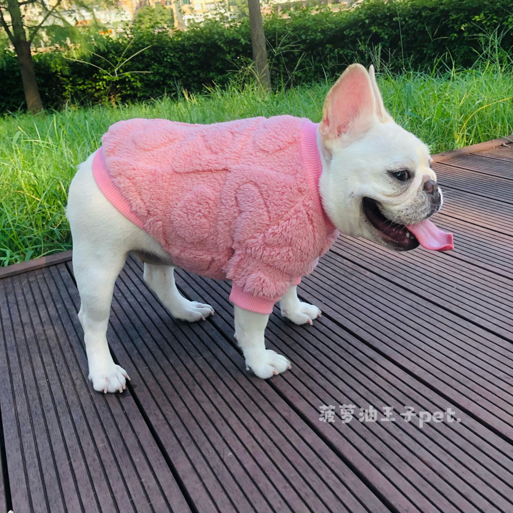 新款宠物衣服 狗狗秋冬装保爱心毛绒衫 法斗 泰迪雪纳瑞衣服胖狗