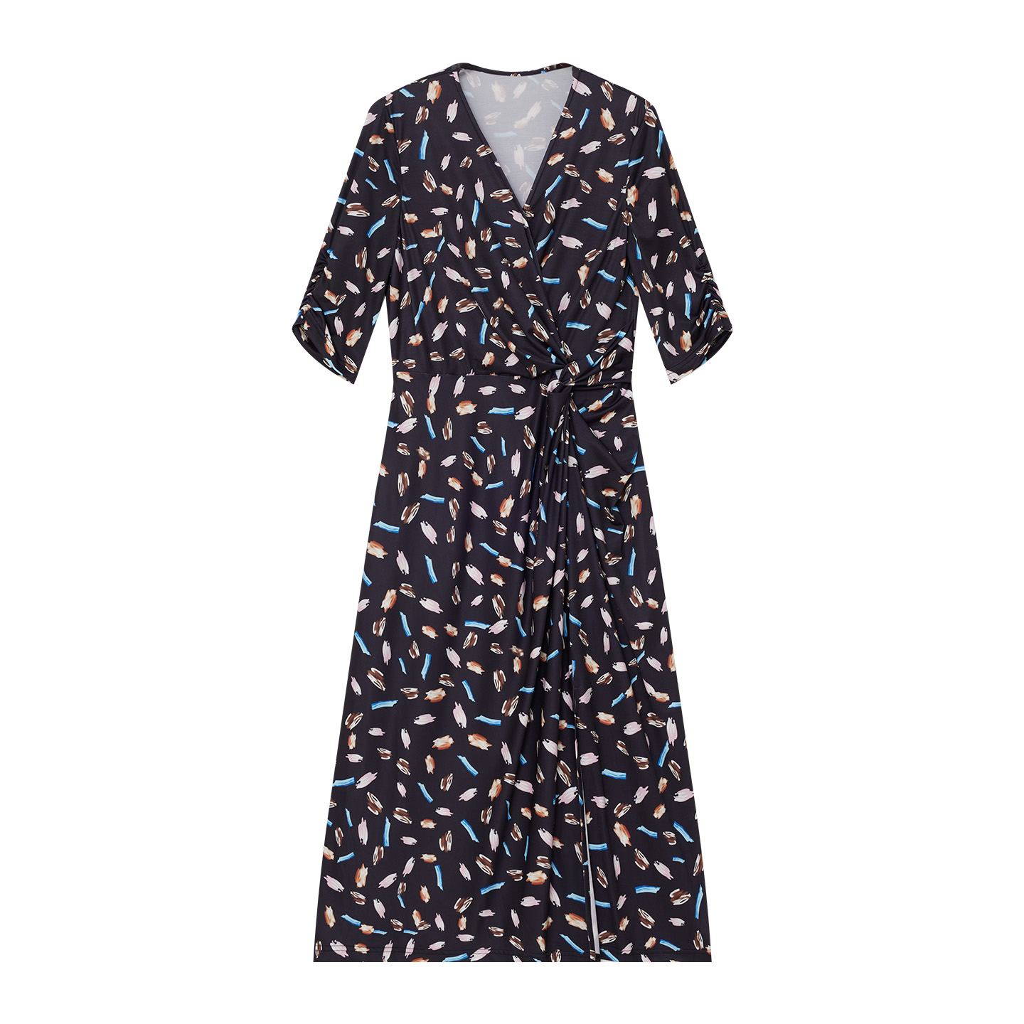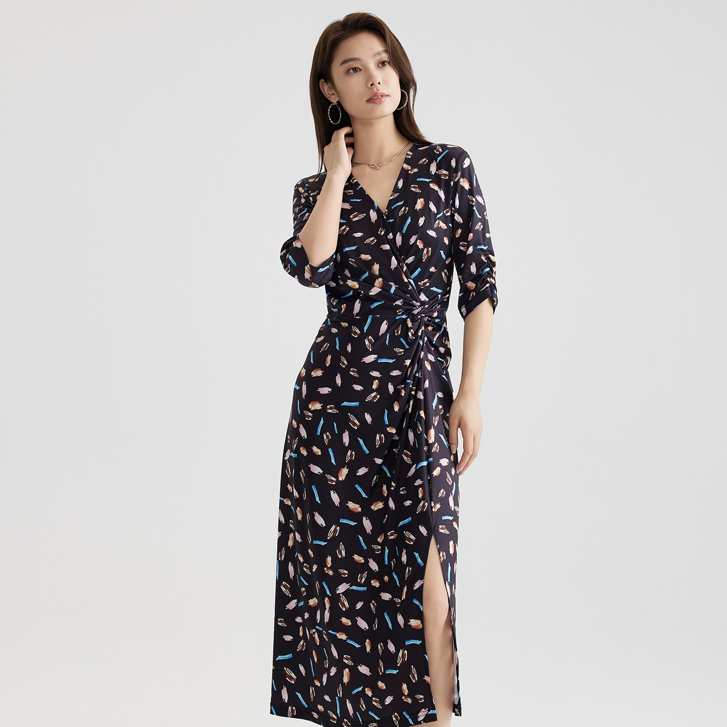 谷邦法式气质连衣裙2025夏新款印花V领收腰显瘦中长款A字裙子