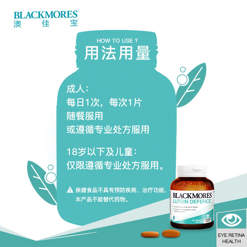 澳佳宝Blackmores叶黄素护眼60片保护成人青少年视力多效护眼焕能