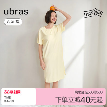 ubras云棉短袖裙子呼呼睡衣棉家居服睡裙性感纯欲睡衣防螨女秋冬