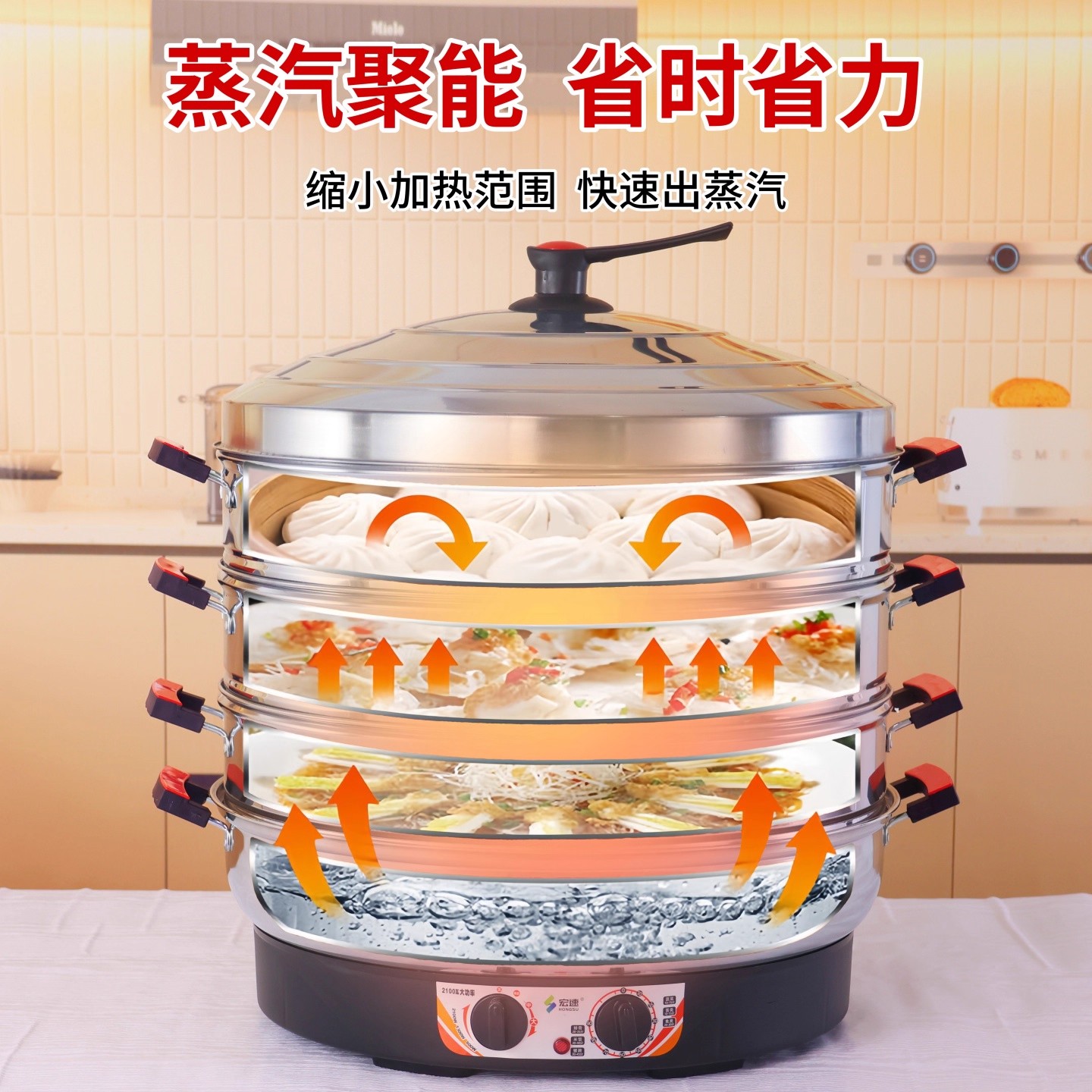 宏速电蒸锅大容量不锈钢多功能家用三层商用电蒸笼保温防干烧52cm