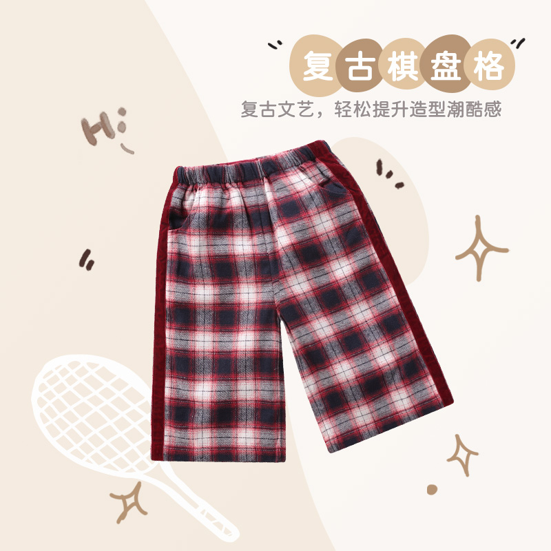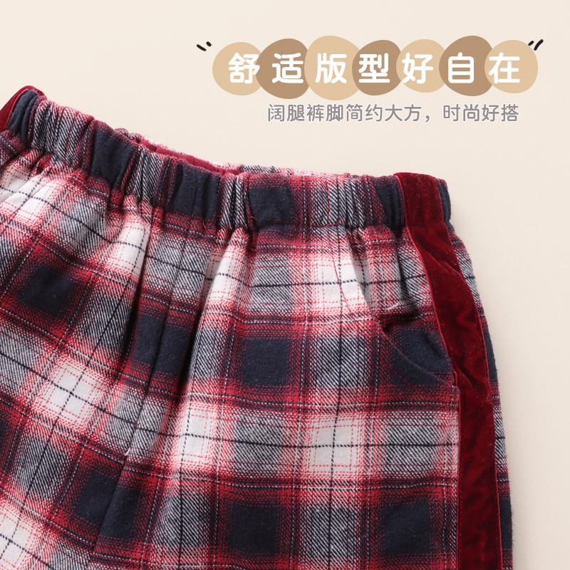 拉比儿童休闲长裤2025秋冬款男女童装阔腿裤铺棉保暖裤子宝宝长裤