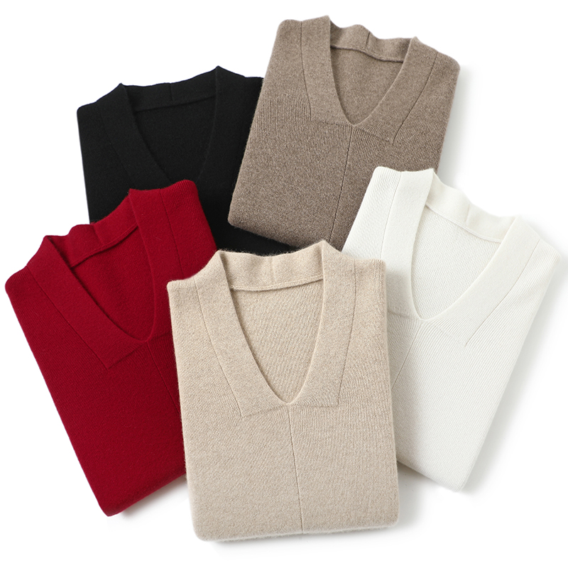非凡气质~四平针加厚V领山羊绒衫100纯羊绒女毛衣内搭打底衫秋冬